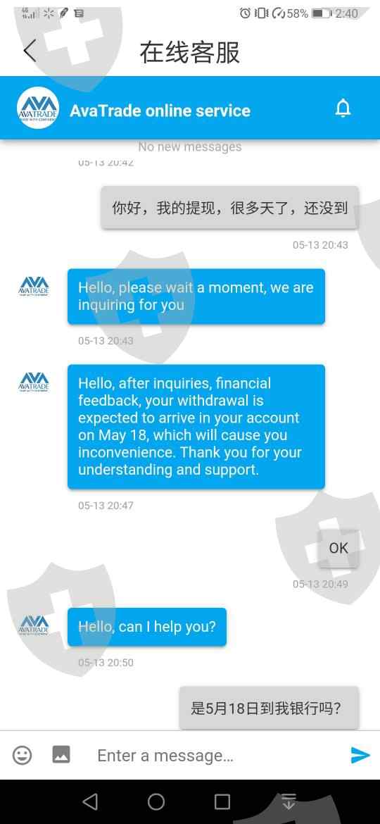 6.7日关于ACY不能交易2小时导致我7000美金损失的客服回复