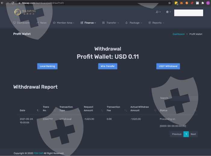 I have not received the withdrawal sum of USD 1,523.00 since 24th May 2021 and customer service of their master introducing broker FDX Capital no longer reply my message.