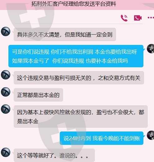 说我交易违规,封了我的号不给出金利润扣除,说只给出本金,现在本金都没着落,问客户经理说让我等3周看看,开会的时候说秒到账,黑平台。