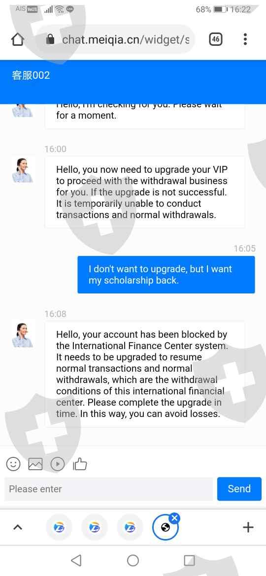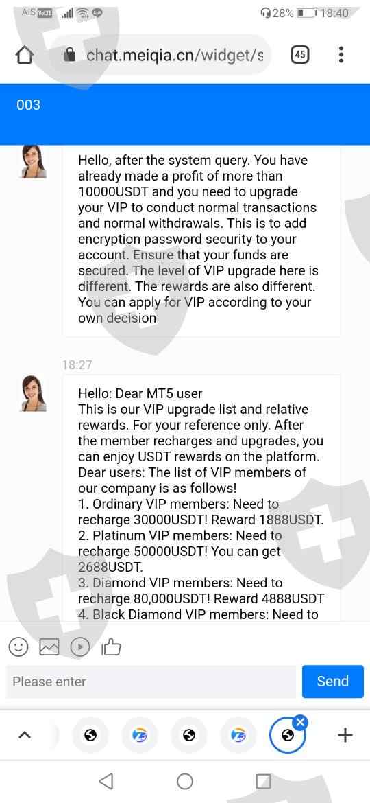 欺诈行为是一个过程。有人从约会网站向我打招呼,会教你如何交易股票,赚取额外收入,诱骗你向经纪人申请,按照第一步的每一步,当你获利时,你可以退出并导致下跌很多。交易时赚取利润,获得大量利润,买入关闭,如果您想买入,您需要升级到VIP才能交易和提款,并且会在交易结束后每天扣除10%帐户的截止日期。