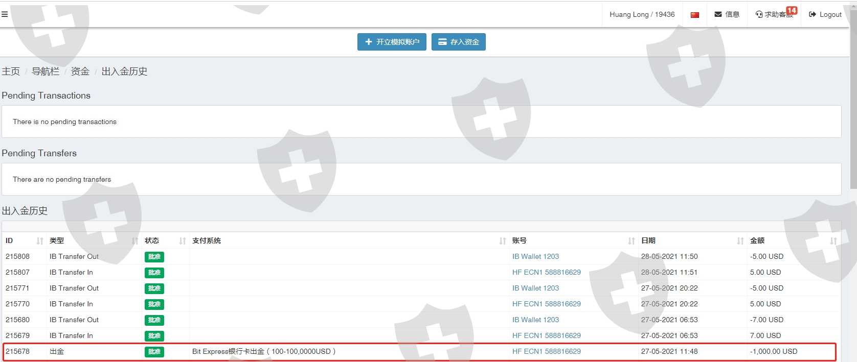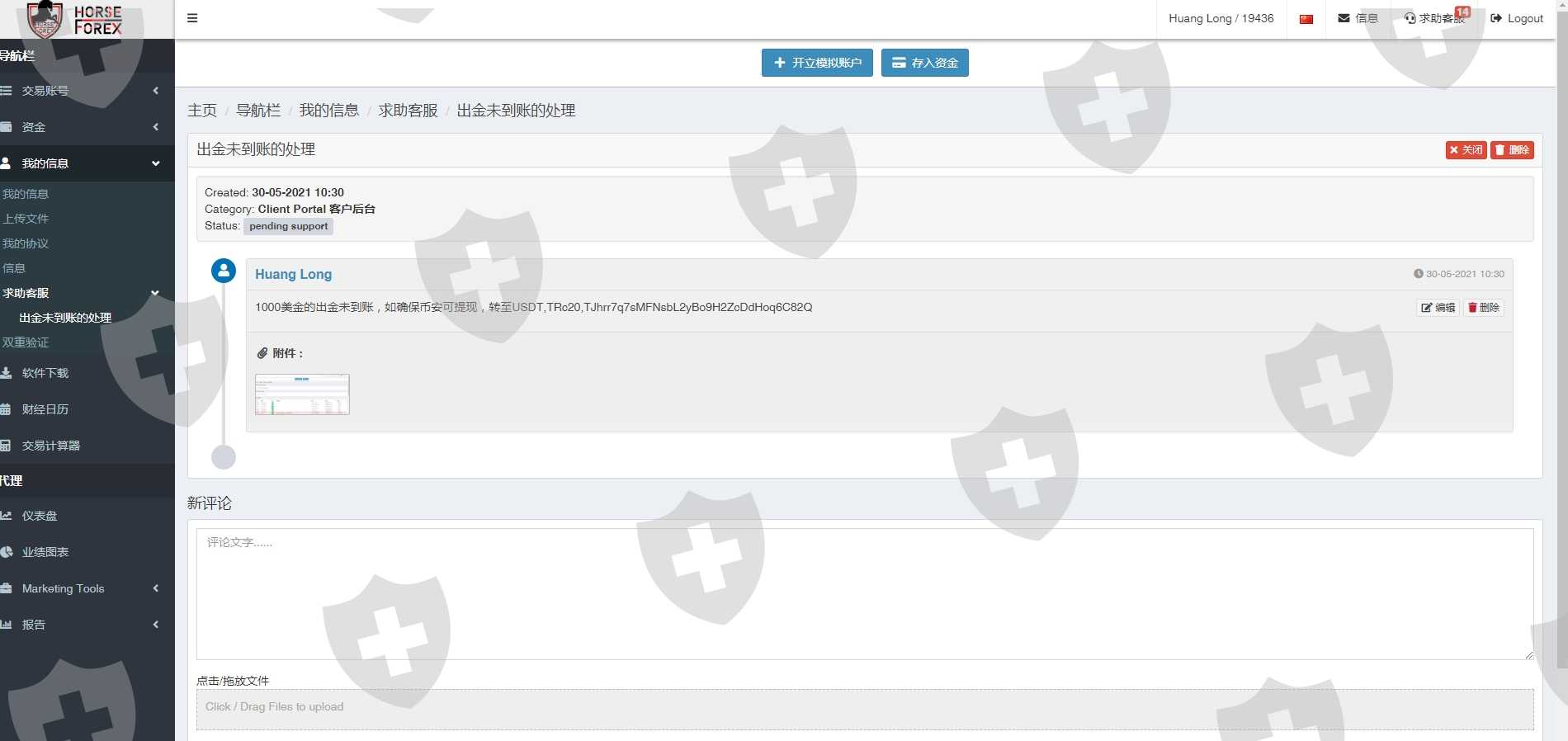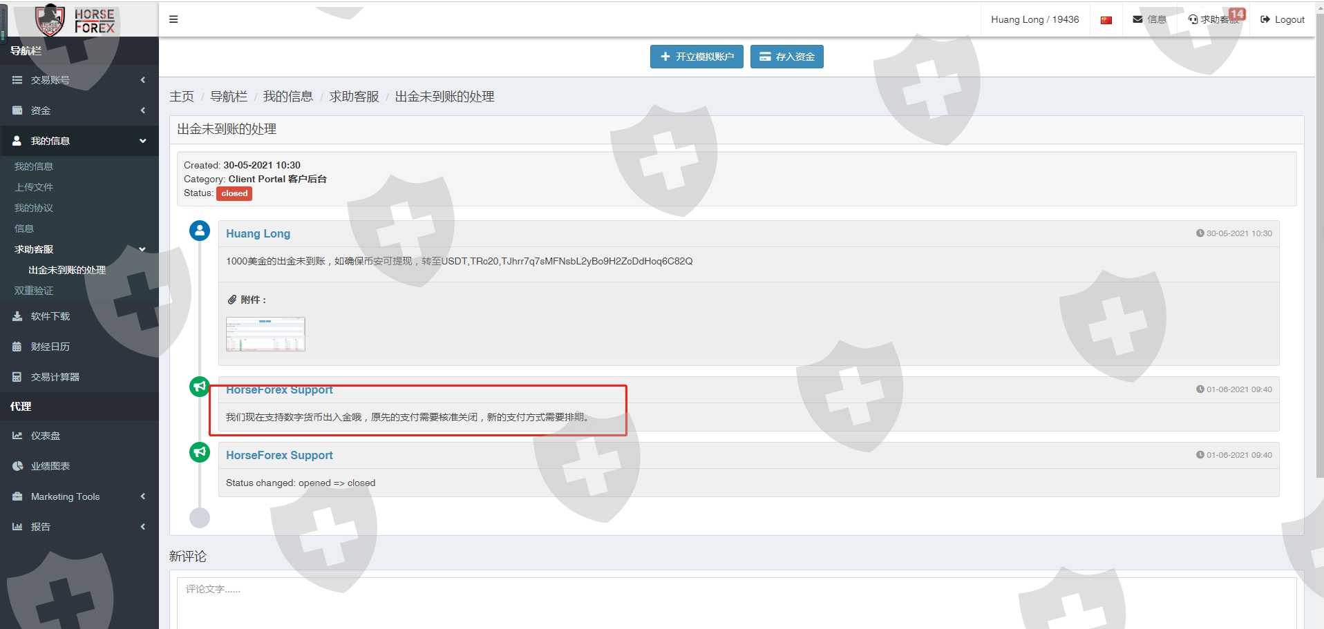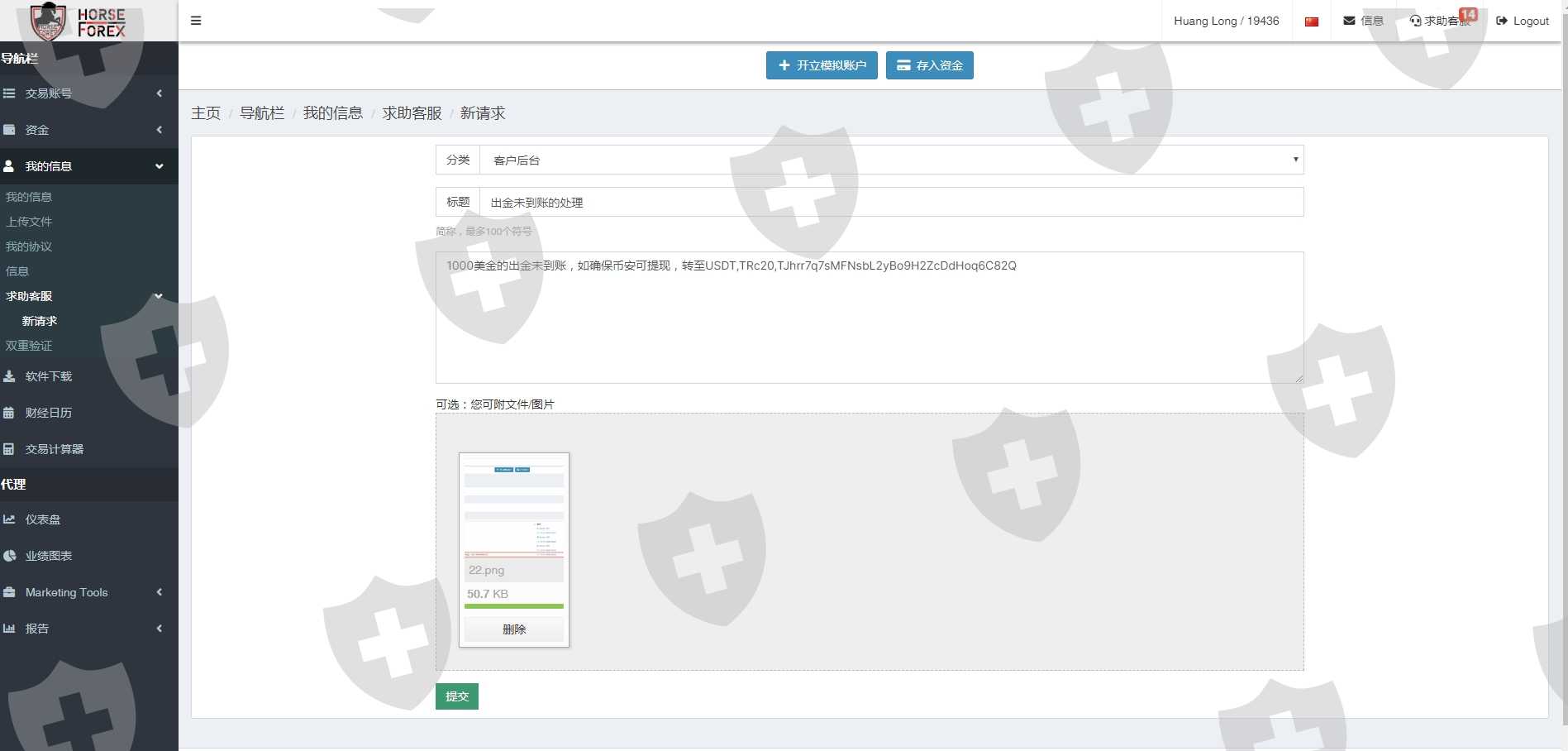 申请出金,交易帐号扣款了,出金不到帐,咨询无回复!