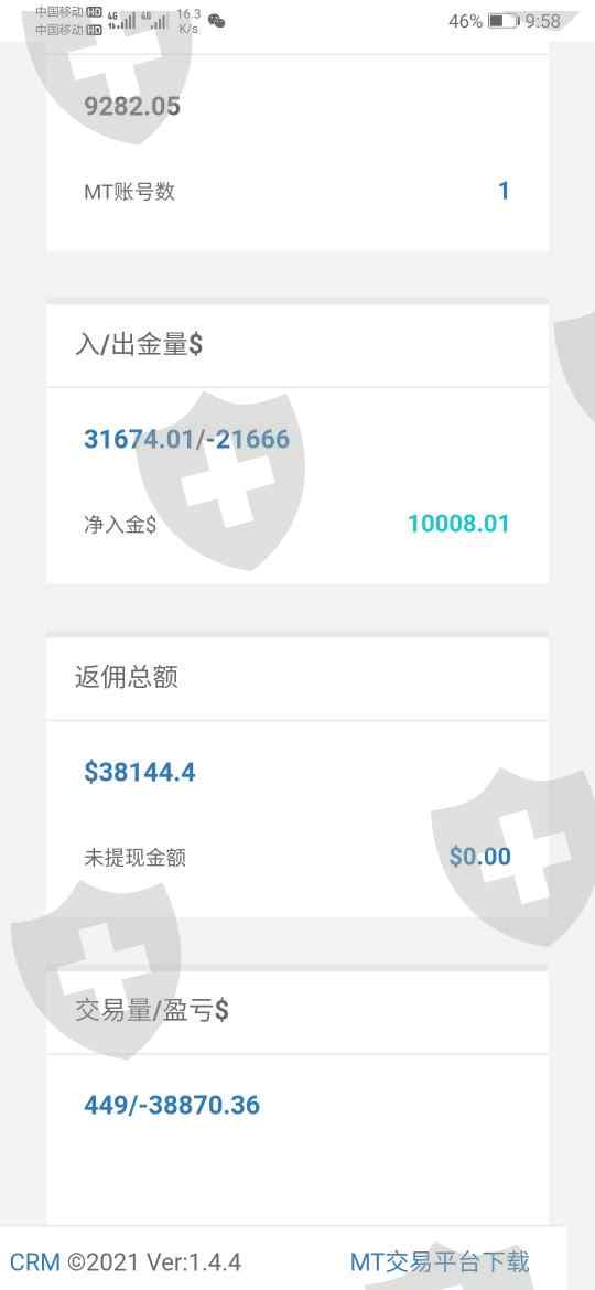 中海环球黑平台:亏损一直亏损,盈利回本就不让出金。资金盘大家不要操作,完全是个坑,当你资金多的时候他们会已重仓,剥透气,套取返佣,刷单,把所有能说的理由全部说出来就是不让出金,我是受害者盈利一万多美金不让出金,而且账户都是正常操作。并不是他们说的刷单。他们是外包公司就是虚拟平台,大家谨慎操作
