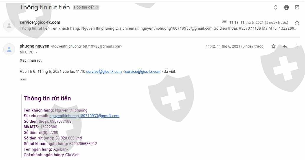 Tôi tên là Nguyễn Thị Phượng, tôi đã và đang giao dịch tại sàn được 1 thời gian, số MT5 của tôi là 13222806, vào ngày thứ 6 tuần trước ( 11/6/2021 ) tôi đã làm 1 lệnh rút tiền khi xác nhận lại với sàn chỉ muốn rút phần tiền vốn 2.200$ và để lại phần tiền lời trong tài khoản theo ý kiến của sàn. Nhưng đến thời điểm hiện tại tôi vẫn chưa thấy trừ tiền trong tài khoản MT5 và tiền vẫn chưa về. Mong sàn giải quyết triệt để giùm tôi vì tôi cần rút ra để xoay sở cho gia đình.