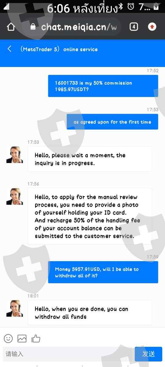 โปรดตรวจสอบฉันไม่สามารถเข้า Meta Trader5 ของฉันได้ id 16001733เพราะถูกบล็อกออก เป็นการโกง และหลอกให้ฝากเงิน เรื่อยๆ เพื่อจะได้ปลดล็อกการถอน ... เป็นเงินสะสมของฉันทั้งชีวิต ฉันหวังว่าจะได้เงินคืน...
