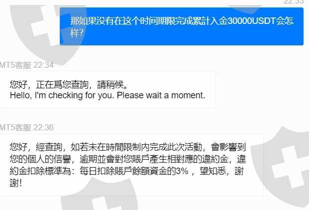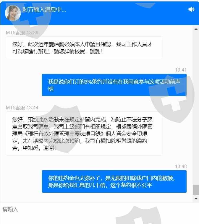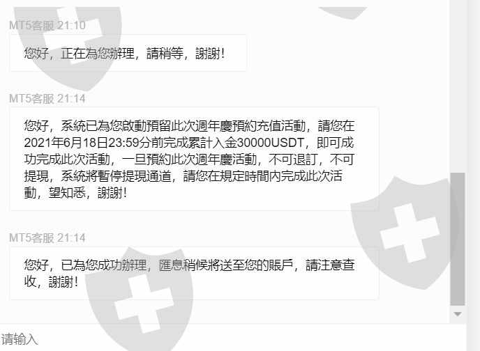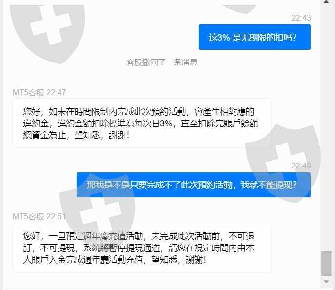 Rifagala.com 为老会员提供周年返利计划,他们要求我在我的 MT5 账户中存入新的 USDT30000,以便从他们那里获得 USDT4888 的奖金,毫无疑问,我的朋友帮我从他的账户中存入了经纪人告诉我这笔存款无效,因为它是从第三方(我的朋友账户)完成的,他们要求我再次存入另外的 USDT30000 以便我完成。我告诉他们撤回/拒绝我朋友存入的金额,因为他们不能接受,但他们说一旦他们让我加入这个计划,他们就冻结了我的账户,不允许提现,然后他们才告诉我如果我无法在给定的时间范围内完成存款,我必须支付罚款,每天从我的 MT5 账户中的全部金额中扣除 3%,直到我全额付款(USDT30000),否则他们会继续扣除这笔钱,直到他们完成我余额中的金额。罚款很可笑,他们付给我USDT4888,然后他们要扣USDT64000,这是一个骗局!此外,他们从来没有告诉我我不能从另一方账户转入我的账户,他们也从来没有告诉我在我同意参加这个计划之前有这样的惩罚,他们只是在我进一步询问时才告诉我,这是不是早先约定的任何合同,他们都策划了这一切来欺骗客户。
