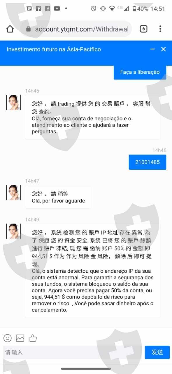 Não consigo fazer retirada solicita um depósito de $900,00. Tornando-se sem lógica eu ter que fazer um depósito para retirar. Já que este valor é quase o valor da retirada. alegam que o ip está anormal.