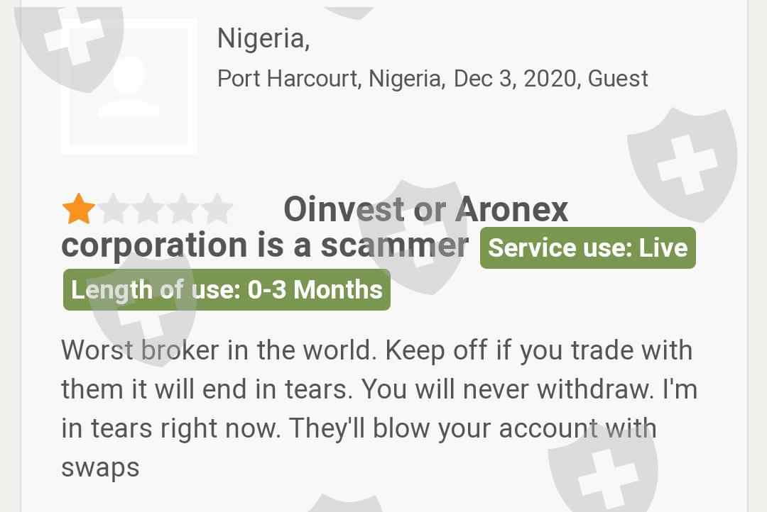 Many clients of OINVEST have complained that this broker urges to invest more and more but does not allow withdrawal and when client tries to withdraw the broker freeze their account. Complete scammer.