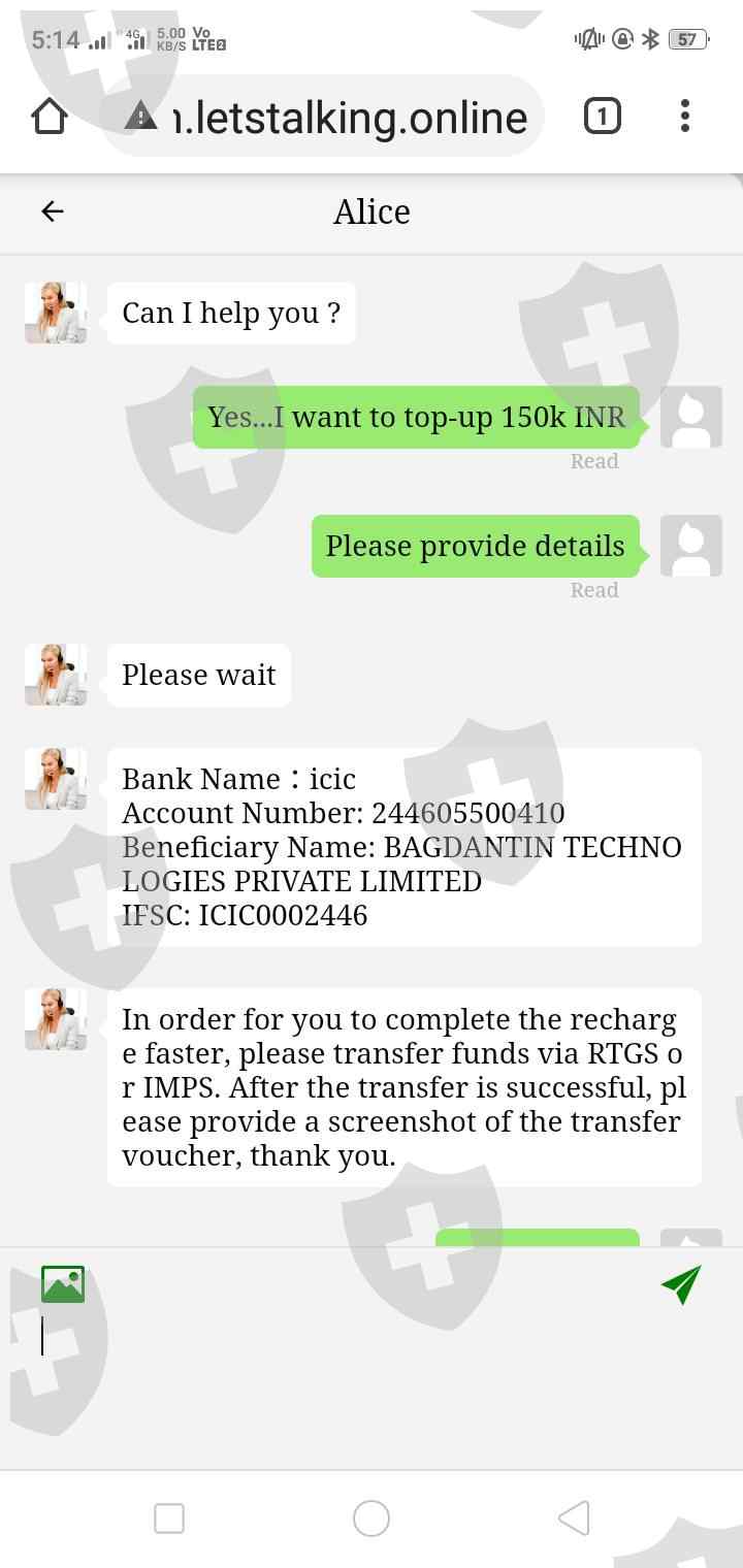 投资了本金卢比。目前无法提取资金的股票市场平台(www.cjcmarkets.site)中的 20 lacs INR。下面提到的印度空壳公司与此欺诈/诈骗网站相关联。 1) Bagdantin Technologies Pvt。 Ltd 和 Gembok Tech Pvt. Ltd., Plot no 76-D, Phase IV Udyog Vihar Sector 18 Gurugram Gurgaon Haryana - 122001 印度。 2) Larke Technologies Pvt. Ltd., 15A, 4TH FLOOR, CITY VISTA, SUITE NO.667, FOUNTAIN ROAD, KHARADI PUNE Pune Maharashtra - 41101