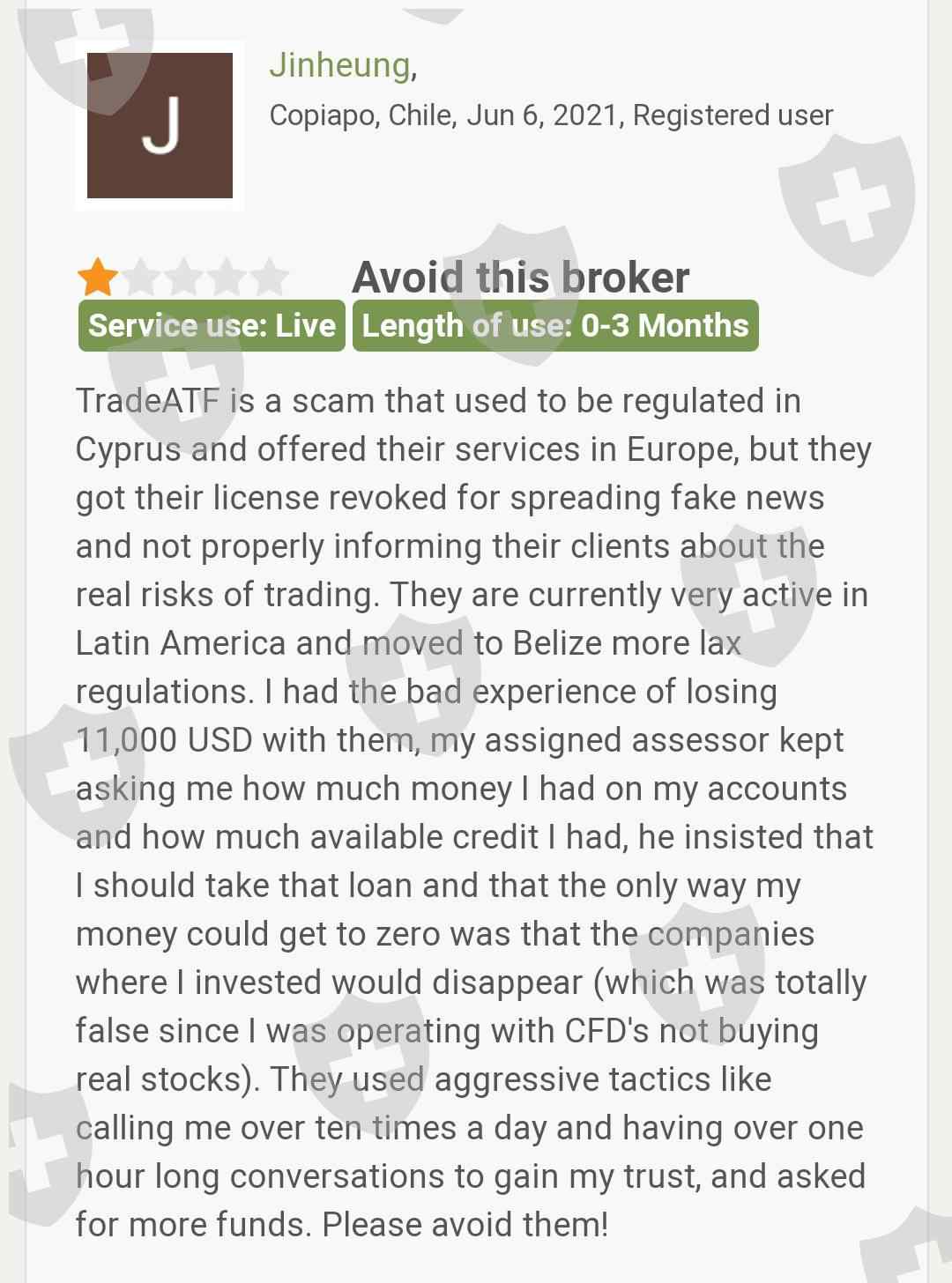 A client of TradeATF has lost a lot of money from his account and he claims this broker used to aggressively ask him to invest more money before he lost a sum of $11000. The client also informs, this broker had its license revoked in Cyprus for unethical practices.