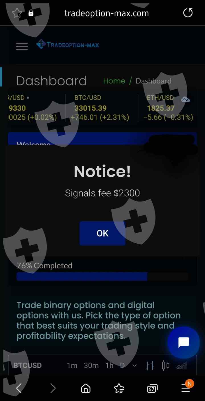 For how many days my page barely moves and on the 3rd day they say I need to pay a Signal Fee of $2300 so I can continue trading and get my money.