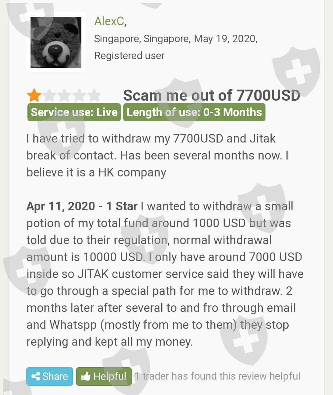 JITAK通过禁止提款和通过虚假网站误导人们来欺骗许多人。