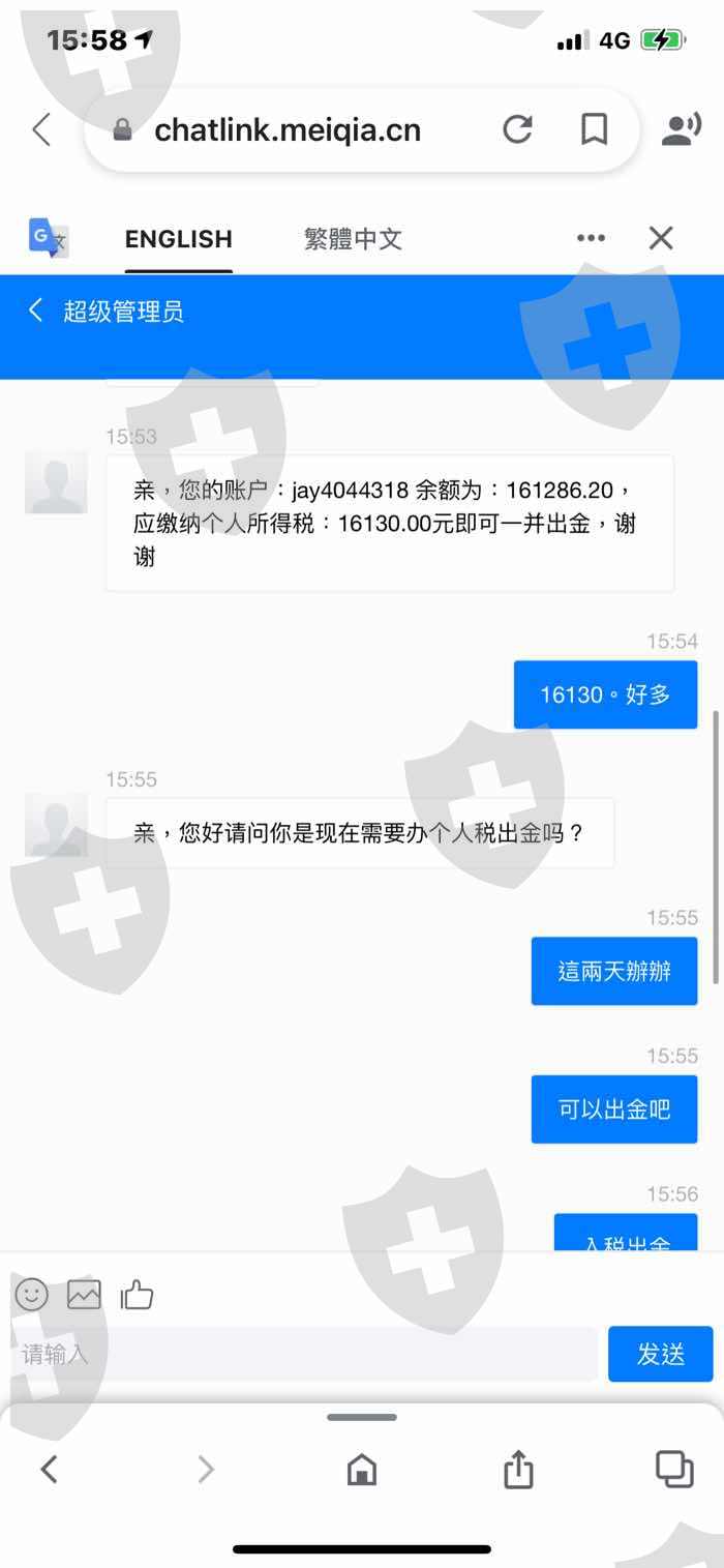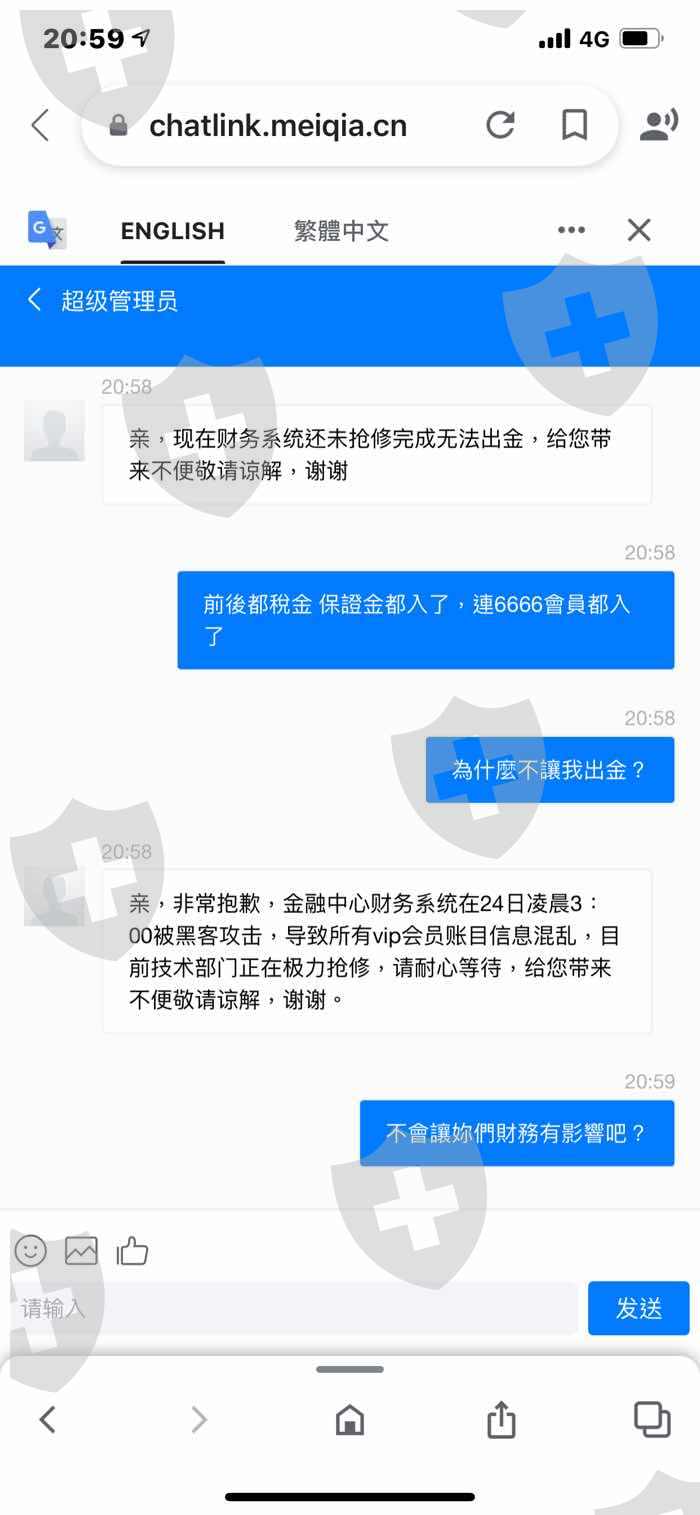 在百合網,認識一位女生邀我一起投資這間,把帳號叫我給處理,然後鼓勵我一起投資我前後投資25000人民幣,當我6月19日出金一直找碴我說要我繳納稅金總金額10%稅金約16200元人民幣,我跟假老婆一起繳納金額為16200人民幣,開始申請出金,又說我是普通會員無法出金,金流系統出問題,要我加vip 會員才能出金然後說0-10分鐘就能出金(金額為6666人民幣),當晚我也加入vip 等我要出金時候又說我同時操作其他人ip,需要我們證明是夫妻或有婚證限期72小時內完成繳納9210人民幣否則放棄這筆錢,就當6月24日當日晚上我跟那位所謂老婆(假的)一起完成繳納這筆保證金9210元,我馬上就問客服沒有其他問題了嗎,客服回答沒問題了,我馬上申請出金,然後說需要24小時後能申請出金,我等到星期五晚上(6月25日)申請出金客服跟我說昨天凌晨三點遭到駭客入侵導致vip 會員資料受損目前搶救中(藉口不讓我出金),我也等到星期六早上申請出金還是被系統出問題不給我出金,直到當天下午1點左右我還可以登入進去看我帳號,到下午四點時候不能登入帳號,我詢問客服說我自已手機問題一直鬼擋牆,然後直接封鎖我,我後悔了