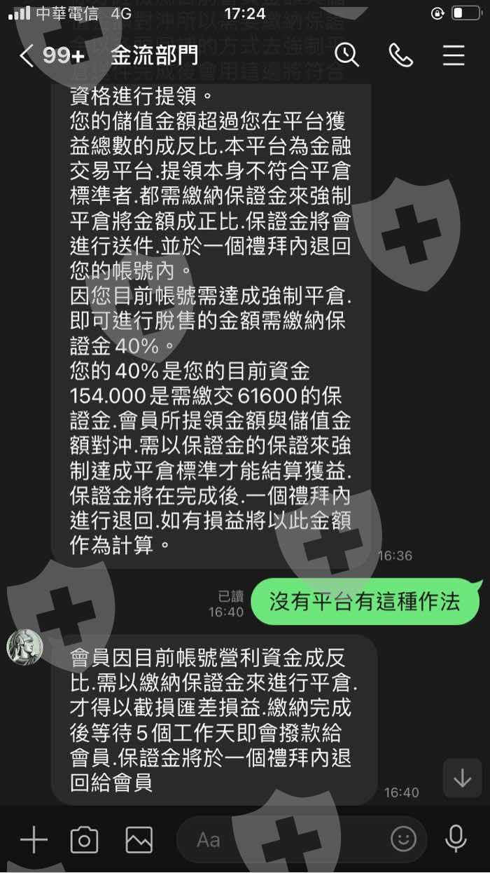 一開始兼職工作,協助僱主(詩穎)下單,中間需透過一個專員(Echo)來下單,後來因僱主說有事無法,要自己收回去做,另外給我一個名額,專員一樣抽50%的佣金,而且必須先支付佣金才能提領,後來平台(E網客服線上中心)提領跟我說要審核五天,後來審核完又轉介給金流部門,金流部門又我說要付保證金,堅持不出金