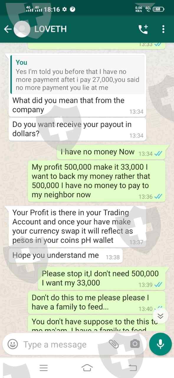 FX Trader Profit is not allowing me to withdraw my money, I profited 500,000 but I just want my 33,000 back. I have a family to feed.