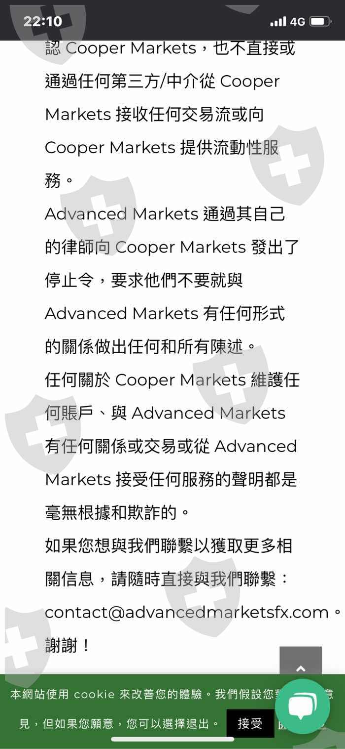 這是一個資金盤,資金根本沒有到流量商,還公告是流量商問題,向流量商發律師函,但是流量商根本沒有承認Cooper Markets,現在負責人無出面回應,錢包的資金也無法領出!