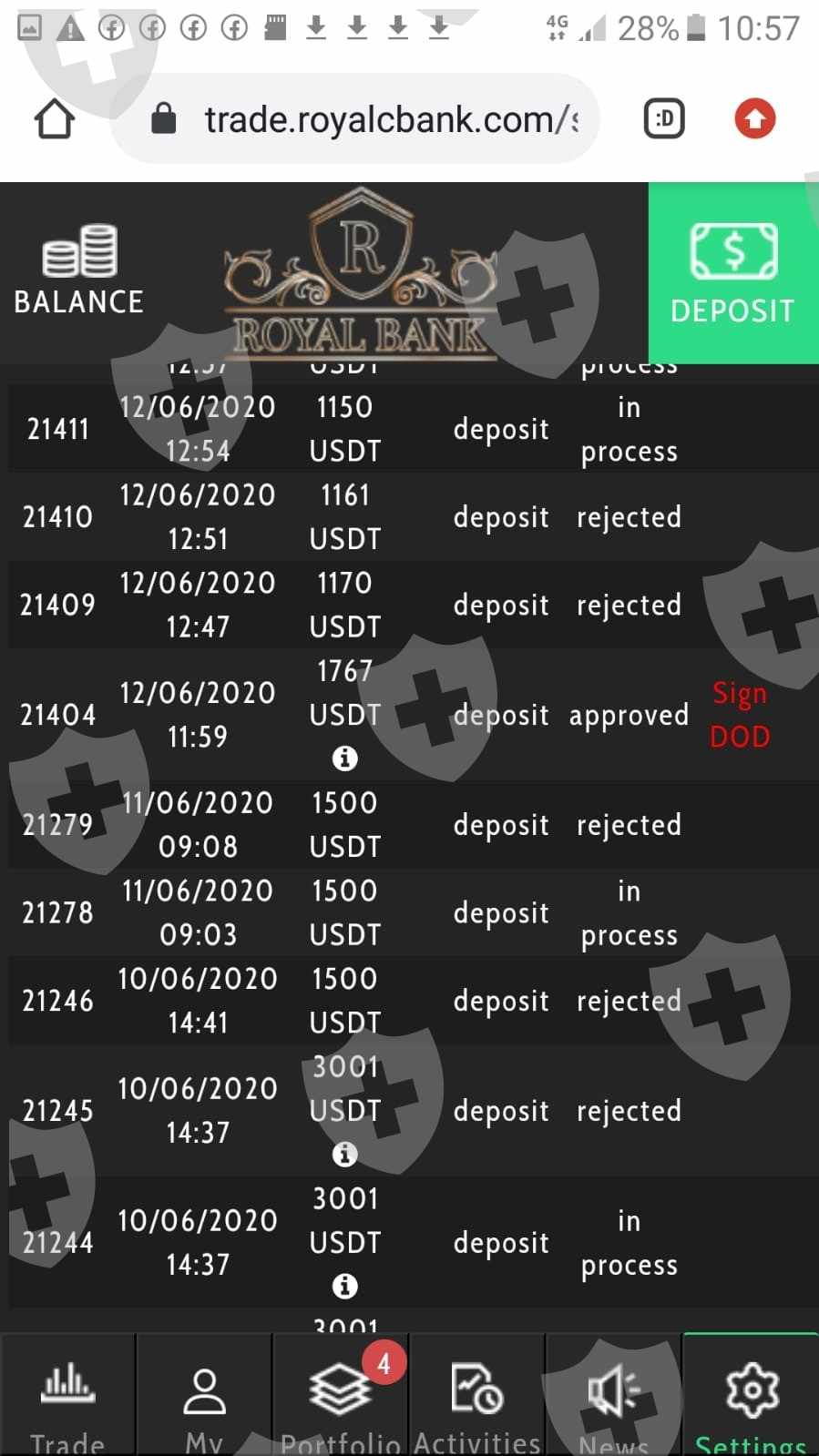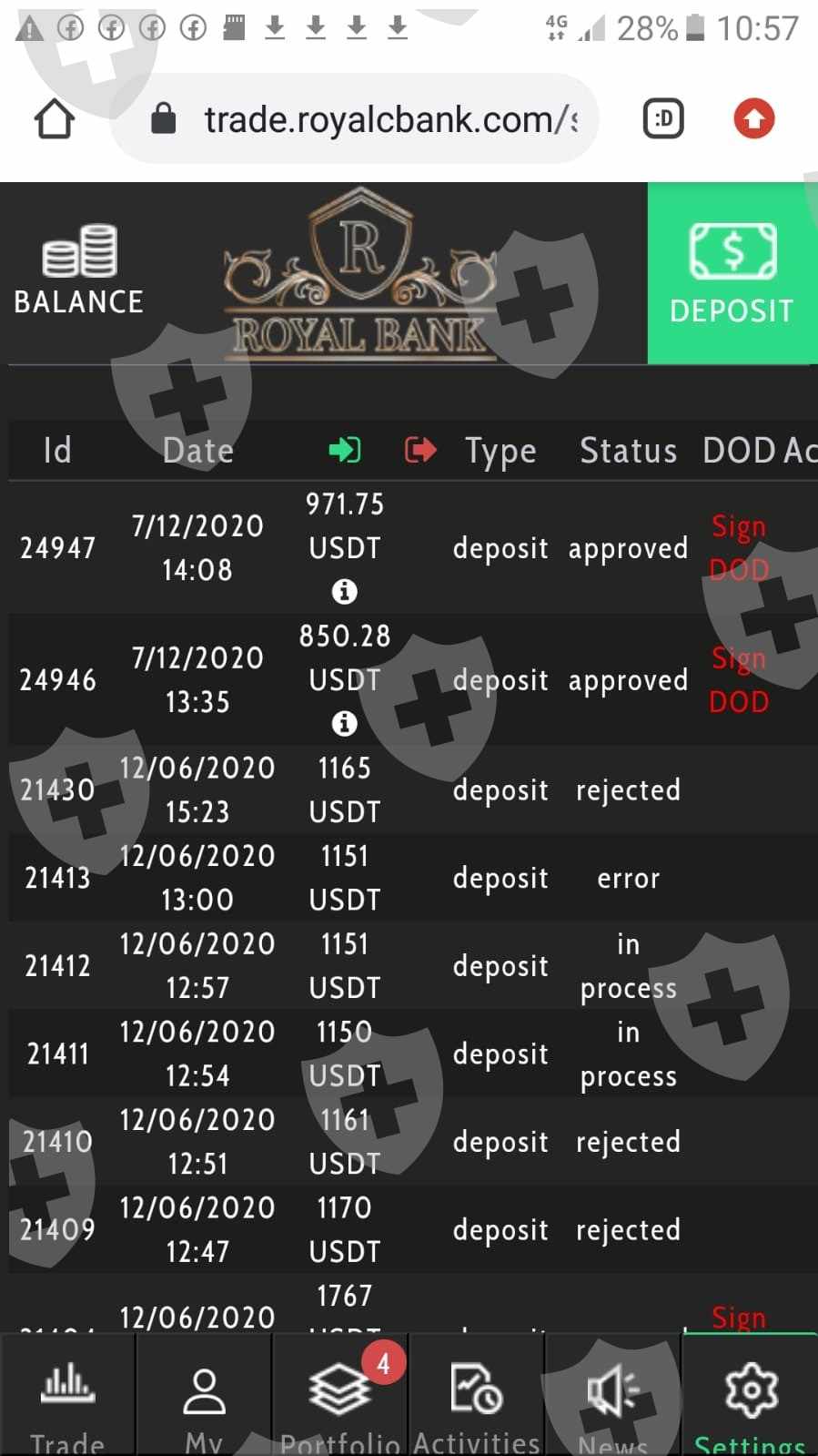 我需要从 Royalc 银行取钱请帮帮我.. 这个平台在我投资的业务方面欺骗了我,并且停止回复我远离ROYAL BANK..