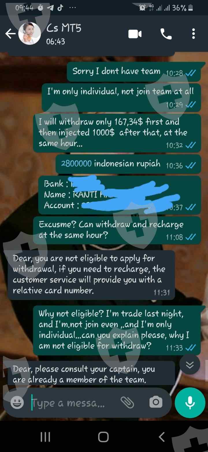 awalnya semua berjalan lancar, recharge or withdraw lancar,. sampai tgl 28 juni 2021 saya ingin withdraw dan saya tidak bs, cs menjelaskan bahqa saya tidak ada transaksi sebelumnya, dan saya harus trading dlu malam sebelum withdraw, akhirnya 29 juni 2021 malam saya trading dan keesokan harinya saya bertanya ke CS dan CS bilang saya tidak eligible untuk withdraw karena even blm berakhir, padahal saya tidak pernah ikut even apapun atau diundang untuk even apapun tidak ada. s