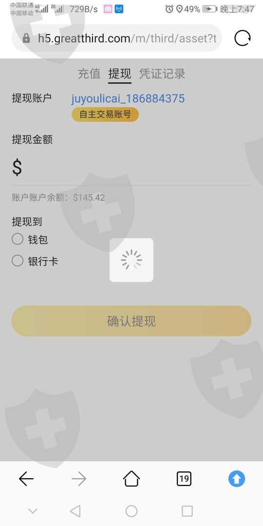 只要点出金,界面就一直转圈圈,不管尝试多少次都一样。