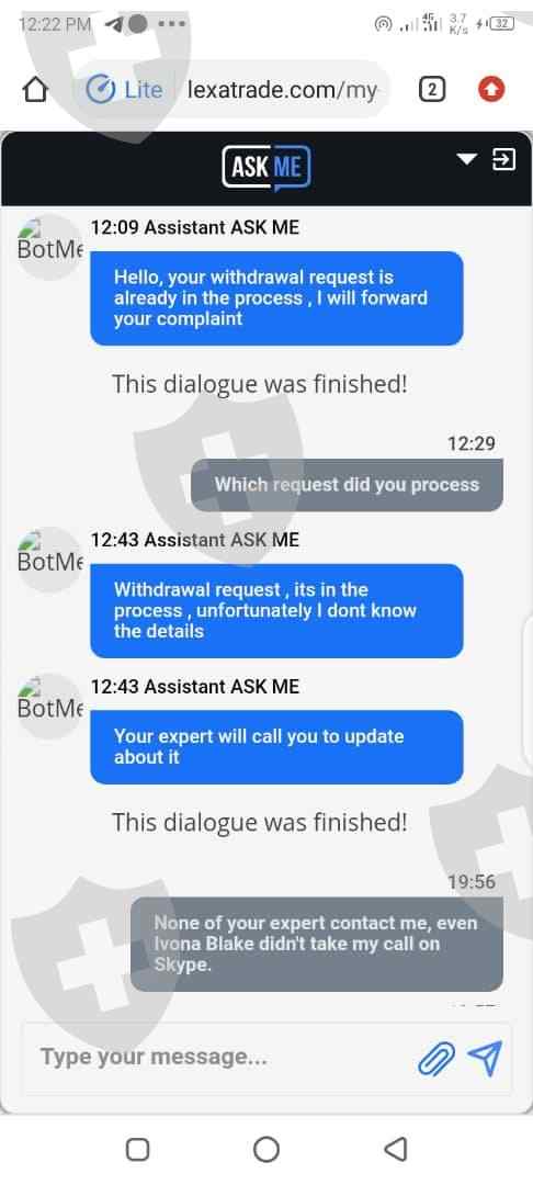 当心,他们是骗子,我在cryptodroid注册,他们选择LexaTrade作为经纪人,我注册后几乎每个小时都会接到他们的电话,我认为他们很好,但我存入了 254 美元,但这些钱没有显示在cryptodroid 应用程序上,我与他们联系,他们一直说我应该存入更多的钱来使用它或者我手动交易,所以我决定手动交易,在我损失 55 美元后,我决定退出,但现在三个星期,他们停止响应