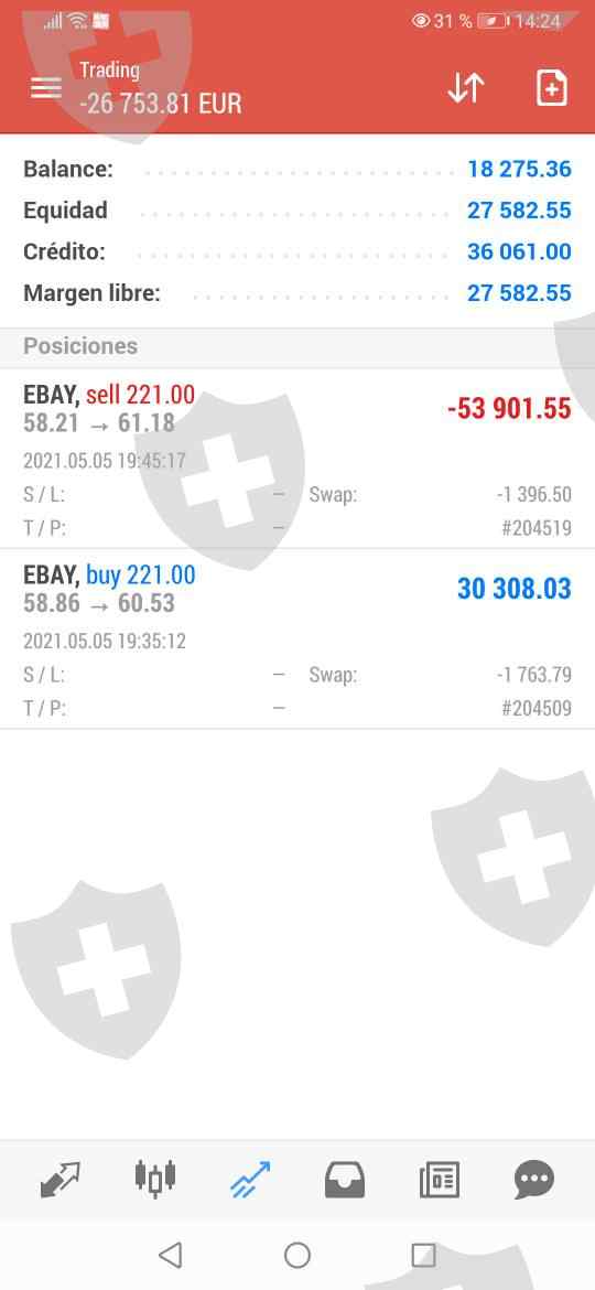 操作被反映了两次,在购买中赢得的操作中看到,但在交易中它说销售并且他们声称是Mt5应用程序中的问题,附上电子邮件表明应用程序的情况不允许关闭操作另外一个图像,当我可以获利退出时,他们不允许我关闭