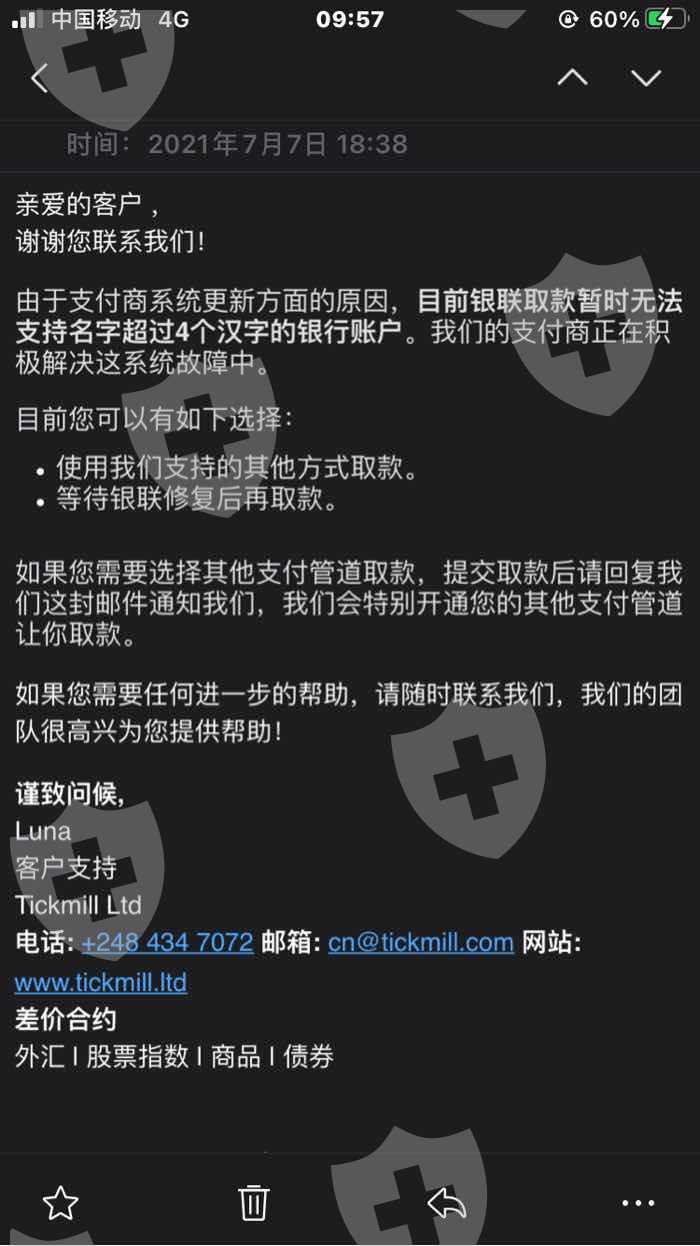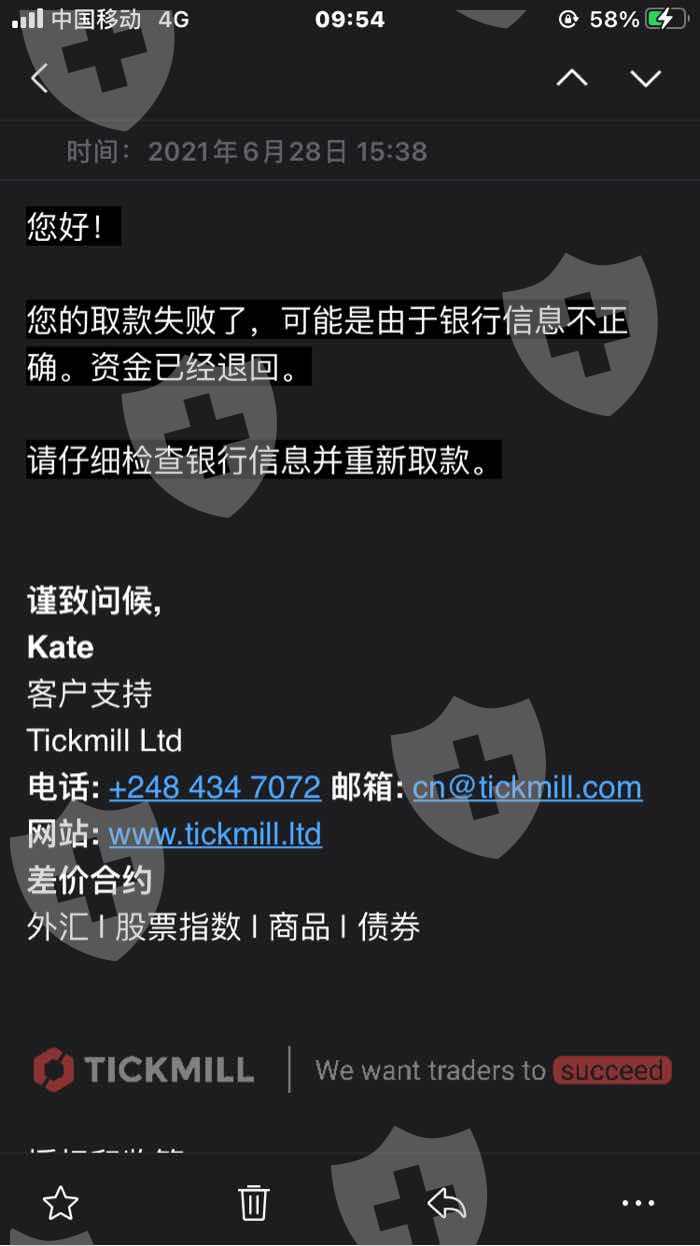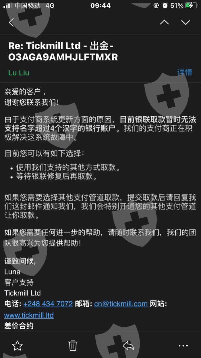 Tickmill 无法出金
