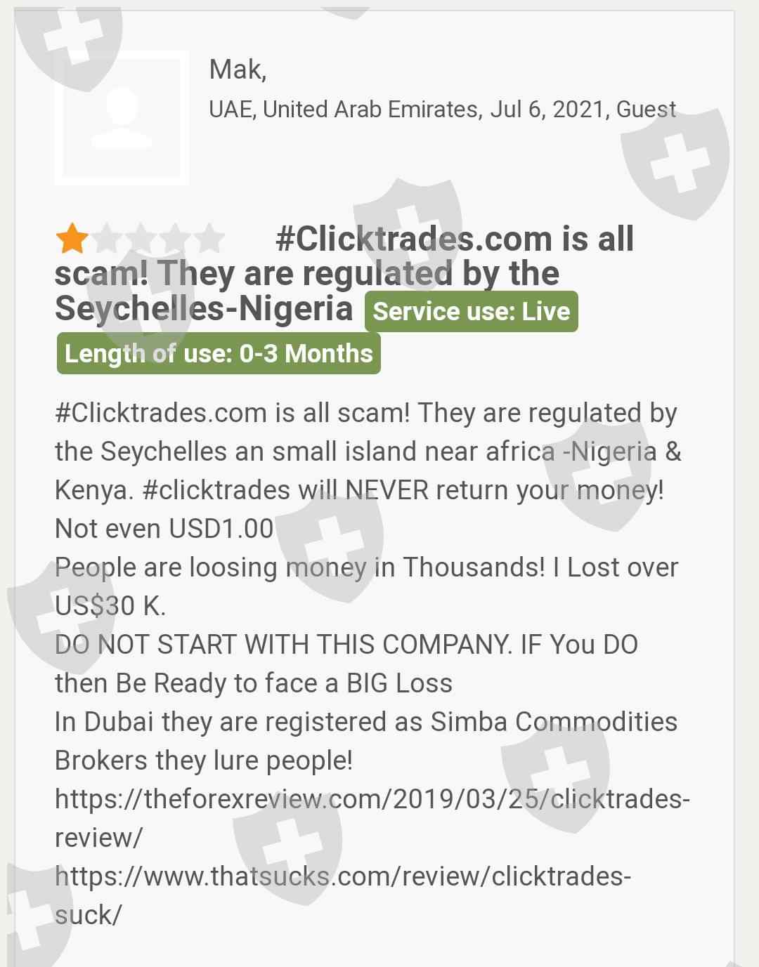 A client has lost $30k in clicktrades. He has claimed if people invest in clicktrades they will lose their money.