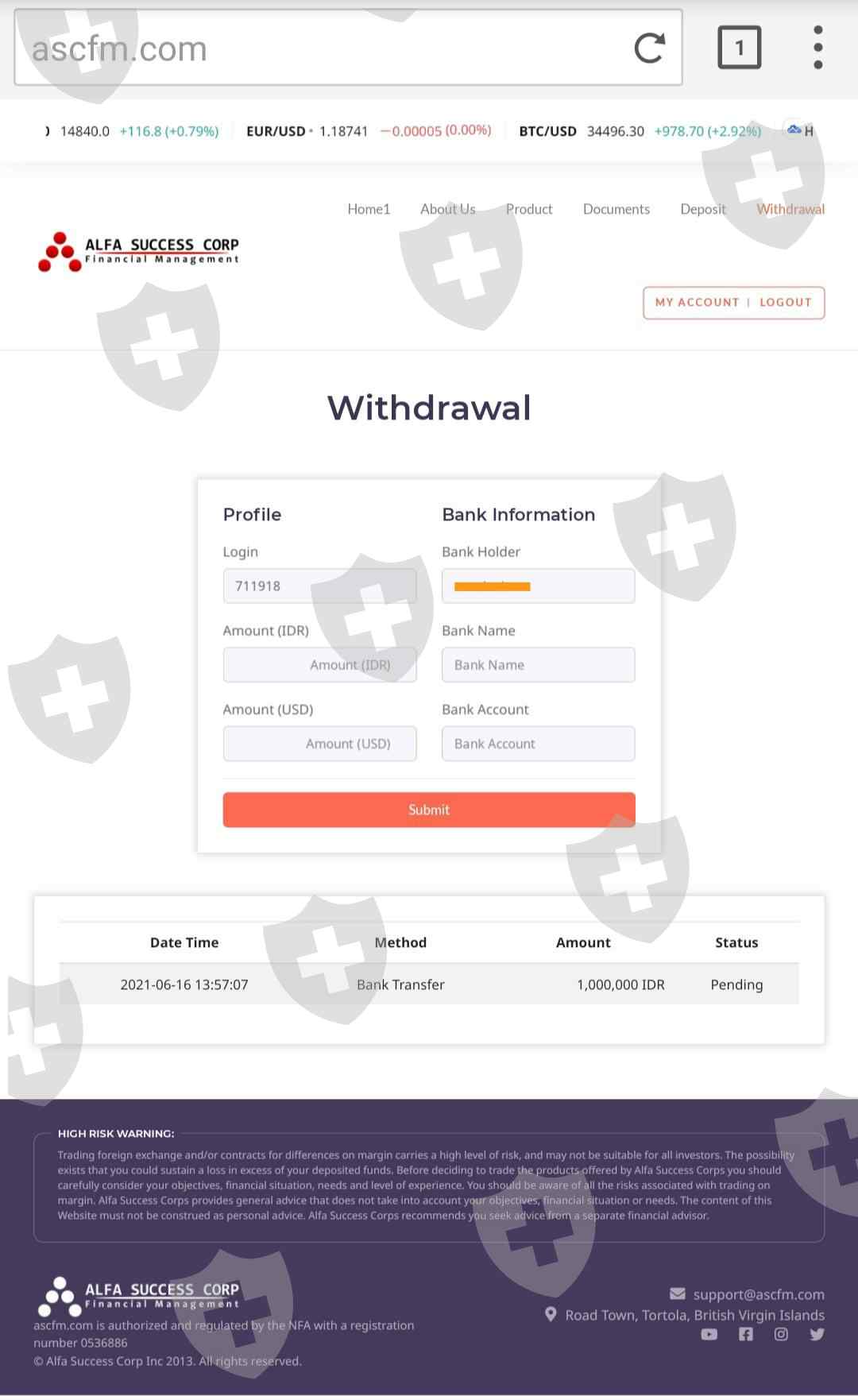 快一个月了,Alfa Success Corp不处理我的出金。已经通过他们的电子邮件支持联系,但仍然没有任何反应。