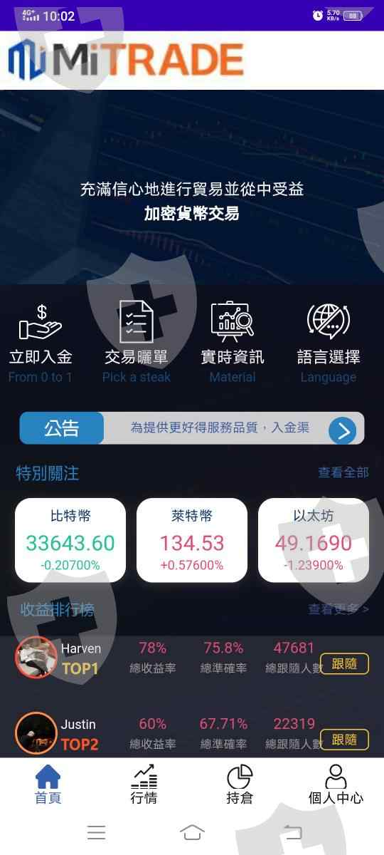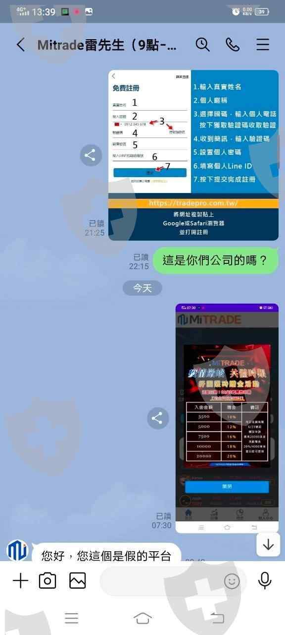 該平台宣稱是Mitrade的代理商,並告知該平台的卷商是受到澳大利亞所監管,所有的入金金額會在澳大利亞央行裡,若卷商倒閉可以致電給澳大利亞央行,告知帳號查詢餘款金額後,會把餘款匯回台灣,經查證正版的Mitrade的客服後得知,Mitrade並沒有所謂的海外授權,該假冒Mitrade網址註冊有效期間為1年,大約到2022/02月截止,該平台會利用投資人想賺錢的心理,鼓吹投入更多的現金進入平台,還提供了社群群組代操、喊單或1v1喊單的方式,讓投資人覺得這是有利可圖的,若投資人在操作中被利益所矇騙時,操作不當導致穿倉,會說因為投資人個人問題,導致卷商虧損,把原本要出金金額取消後,再要求投資人把所謂倉位負數餘額補足,利用投資人信用問題來加以矇騙榨取金額,或利用人情道德來告知,虧損的錢他會處理,不需要擔心,加以道德上的綁架,只要在投入大量的金額後,努力把帳面虧損的錢賺回還他即可,經詢問過正常管道的外匯資深人員告知,正常來說,外匯很難會遇到穿倉,因為會有所謂的虧損%問題,且若真的不小心穿倉成負數也不會有所謂賠償的問題,只要致電給客服歸零即可,請各位投資人,小心此平台