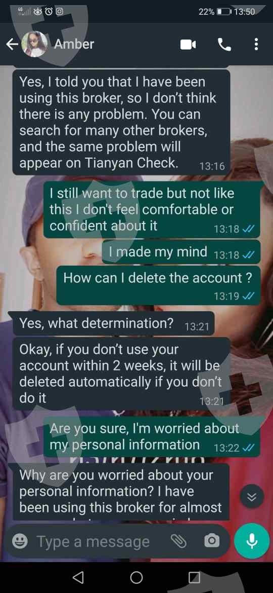 this lady Amber or Chen Ruxue if is that the real name is telling me the account is going to be automatically in 2 week, and is giving me some excuses for why the broker is not registered.