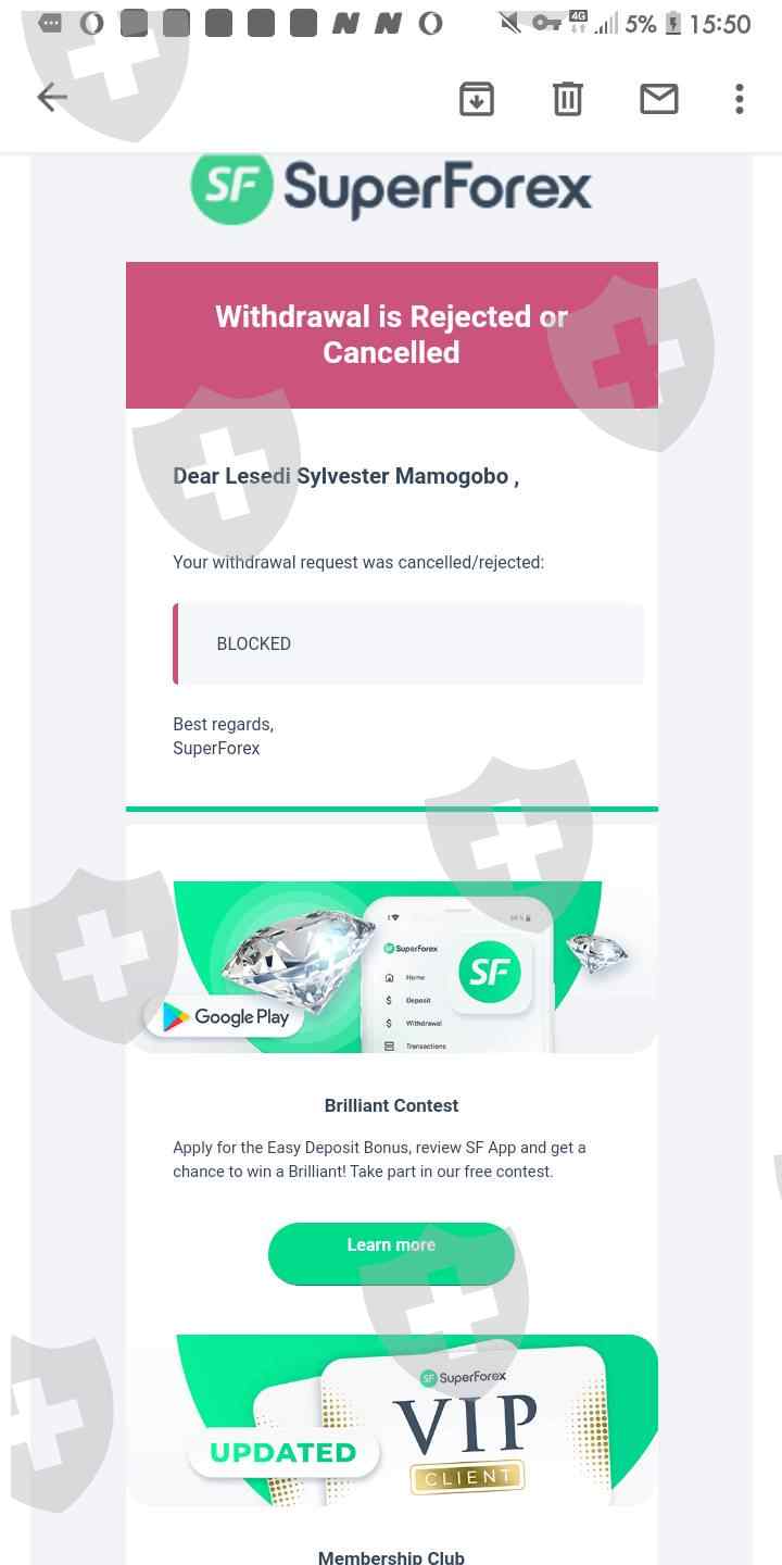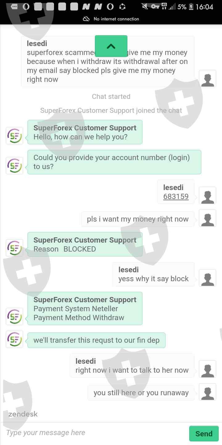 suoerforex scammed me R59k pls be careful guys stay away from superforex you will never withdraw you deposit money and profits pls stay away im begging you