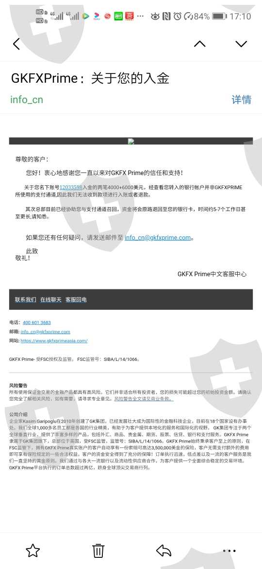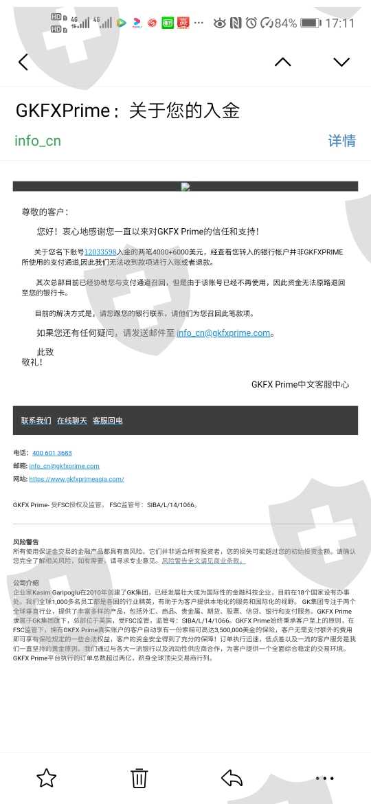 6月25号,早上重庆的一家公司秦磊催促我完成入金,可以拿返现,连续入金分别4000美金和6000美金,结果都没有入金到账。这里着重声明一下,我每次入金都是点复制的,防止出错。秦磊说会让平台去查,查了两天,说我入错账号了,还特意问我截图了没,知道我没截图后,一口咬定我入错账户。我让平台提供正确的账户记录,平台拒绝。后来邮件告诉我帮我查,查了一周说查到了,协助我退款,一周过后,又发一封邮件,说那个账户已封,无法帮我退款,让我去联系银行,银行让我报警,警察让我去找法院。难不难!我想告诉大家,这个平台有问题,请大家不要在这个平台做了,很容易被骗。出金要一周以上。而且不一定到账。自己想想咋回事吧。具体请看附图。目前我会去找律师通过法院起诉处理。