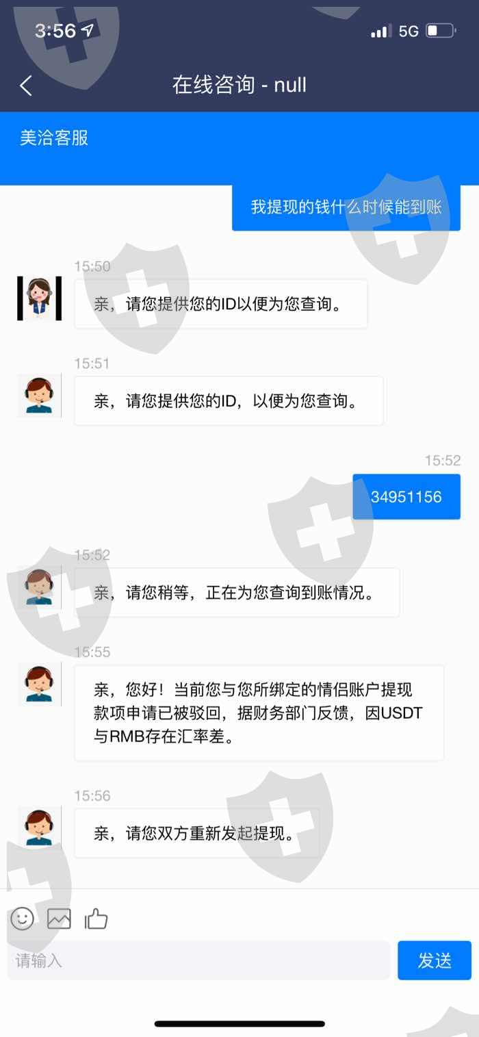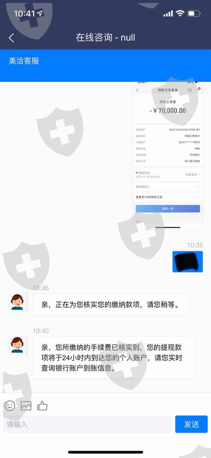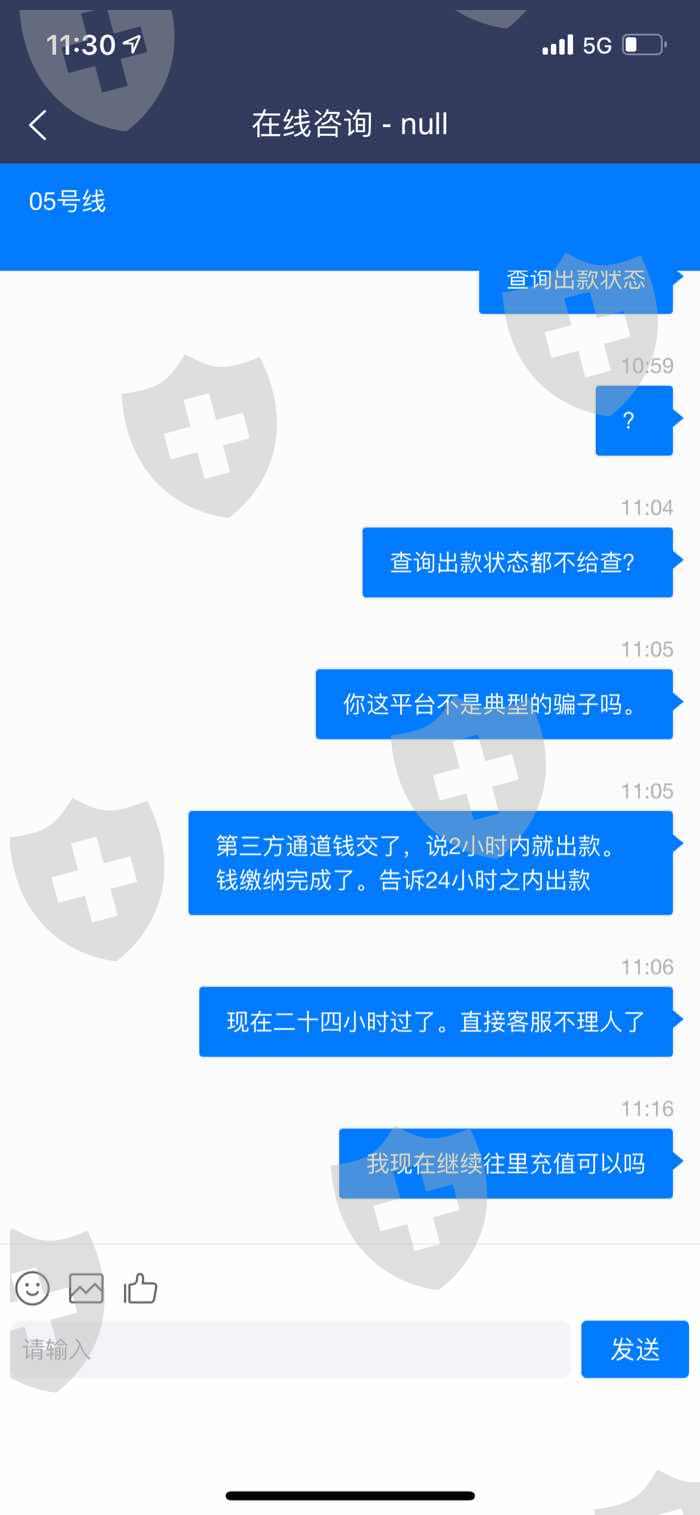 该平台以情侣充值业务诱导消费者充值,钱充值里了无法提现,还需要继续往里充值,第一笔需要缴纳办理大额通道费,第二次办理缴纳第三方通道费,所有款项缴纳完毕。客服告诉24小时之内打款。过了24小时款没到账,客服直接不理人。现在平台也登入不上去