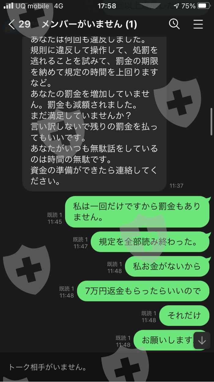 MetaTrader 5アプリでShineTrader-Liveという名前を利用して私をFX投資しに勧誘されて初めに11万円振り込んでしまいました。私は11万円の資金で操作していました。その時に私は利益がもらって引き出し申請する時、操作してしまった。引き出しの時に操作したら罰金があることを私に教えてくれないで私のアカウントを凍結すると言われ、罰金1498ドル送金したらアカウントの中のお金を引き出し申請することができると言われました。引き出し申請も拒否されました。FX投資する時のルールとかを説明されずに罰金事件で私のお金を出金してくれませんでした。だから私を罰金を支払うと決めて金額を下がるように調整してくれるように相談したところ、私を10万円罰金を払ったらいいと言われました。10万円も私にとって多いから7万円減免申請をお願いしました。その時先に7万円払ったら減免申請すると言われたから私は7万円を送金しました。送金終わった後に7万円減免申請が不合格ということで残り3万円を送金するように言われました。私もお金がないのでまた送金しませんでした。ルールを説明されずに