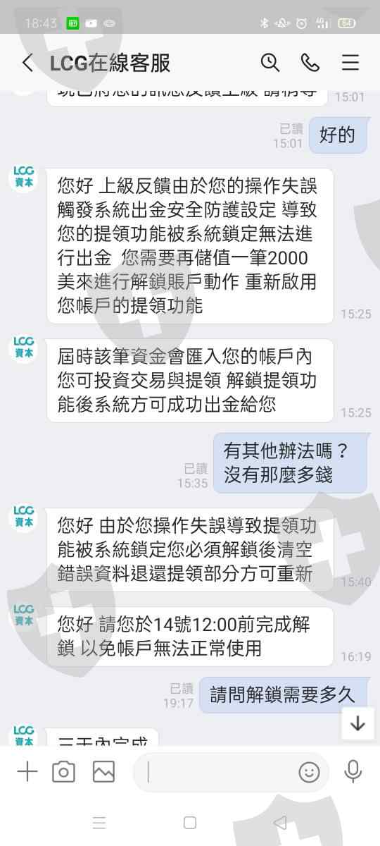 LCG資本平台無法出金