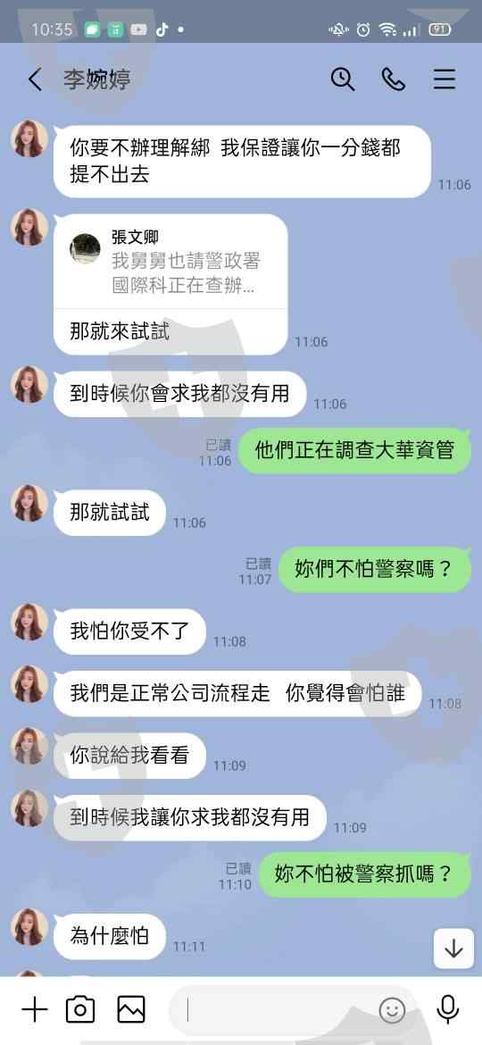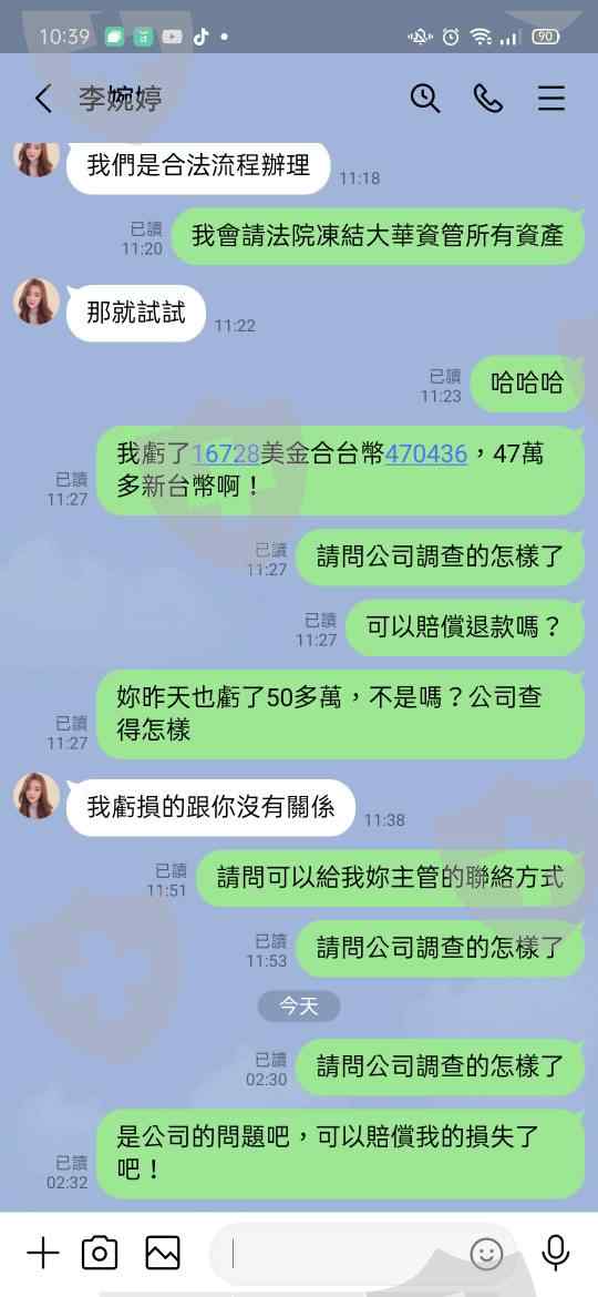 於網路看到投資訊息後加入對方LINE,客服說一致性交易獲利百分百,被慫恿至他們網站投資,歹徒誆稱保證獲利,穩賺不賠。遂依歹徒指示陸續匯款5萬2千美金,惟要提領獲利出金時卻無法出金,驚覺受騙。