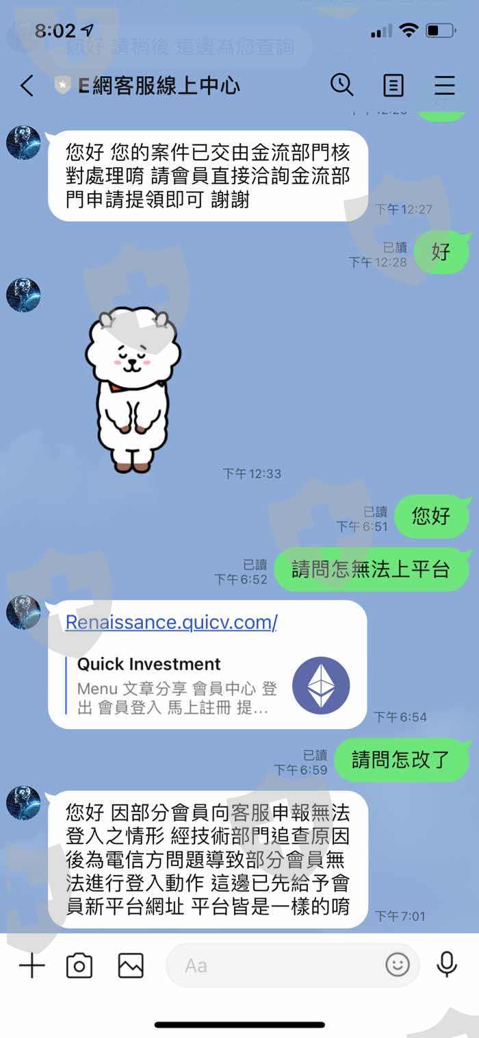 今天發現無法登上平台,詢問客服告知已改網址https://renaissance.quicv.com/請大家務必小心