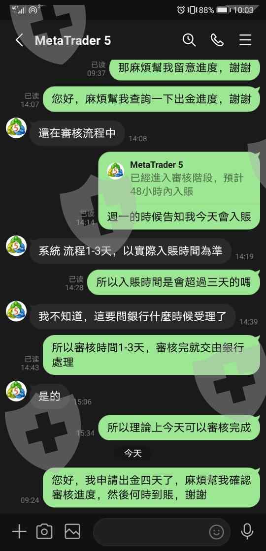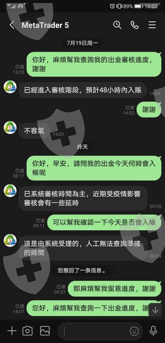 7/17申請出金,7/19告知48小時內到賬,7/21詢問就開始找理由拖延,最後直接不讀不回