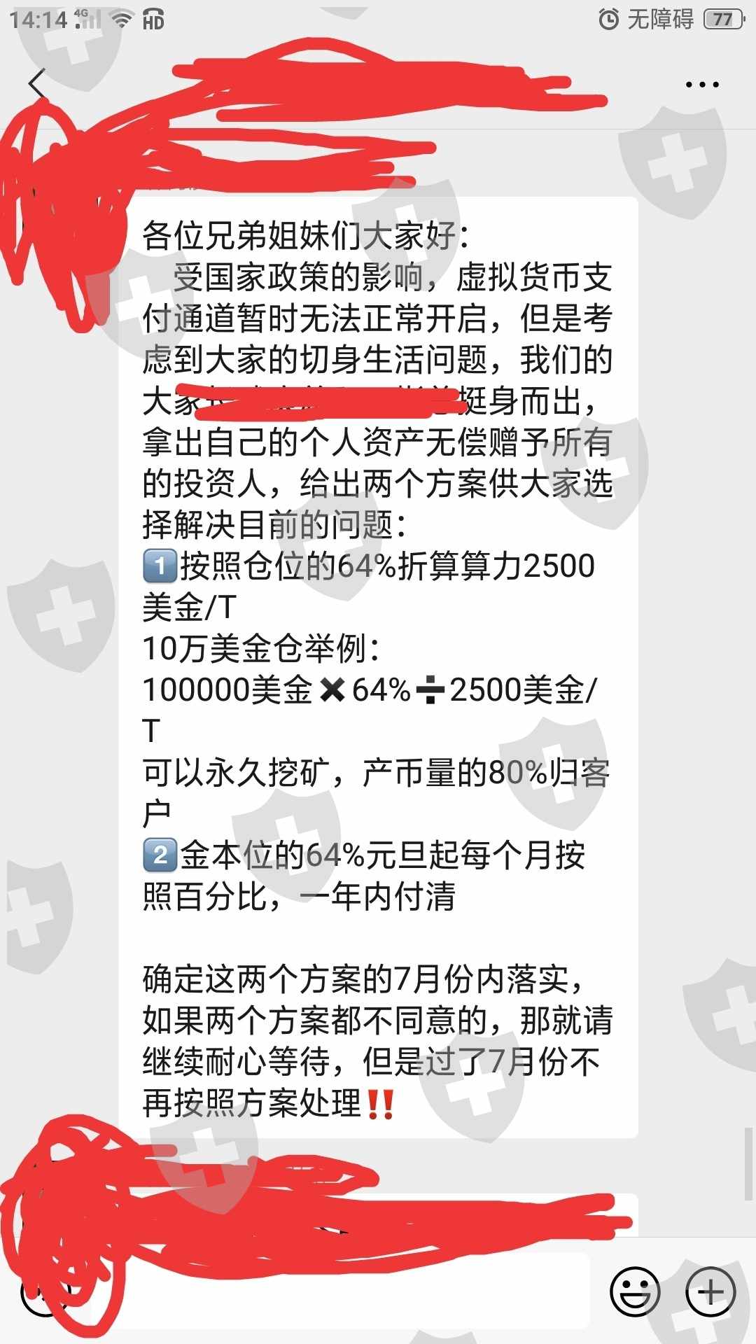 从5月17号后,就不能出金了,本金也出不来,还要求我们转矿,就是一个骗子,投了几十万没了