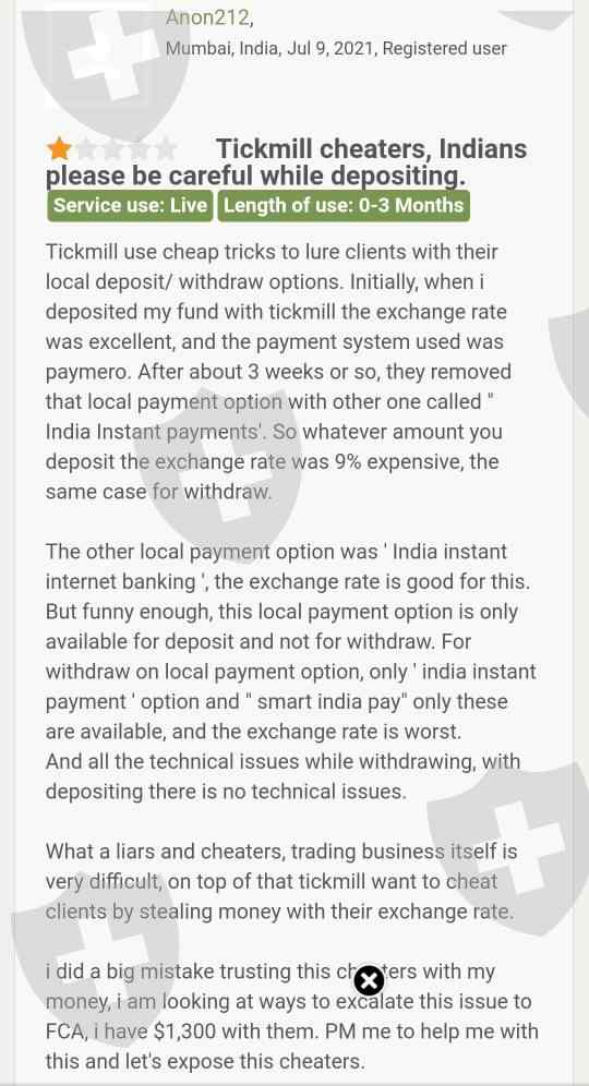 A client from India has complained that tickmill charges exchange rate of 9% higher whenever he tries to deposit or withdraw through the local system and he faces technical issues whenever he tries to withdraw. Now he thinks he made a big mistake by putting his money into this broker.