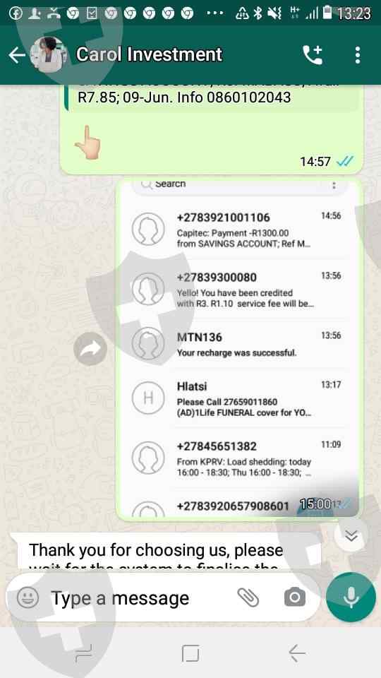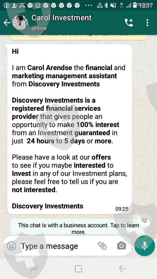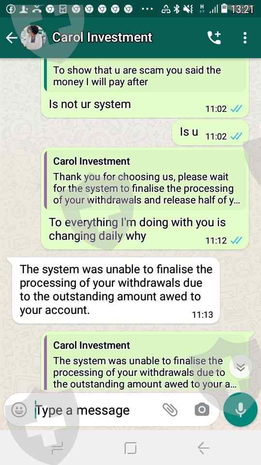 Carol 假装在discovery investment工作,骗了我 $2100, 我分别付了 $900, $1300。