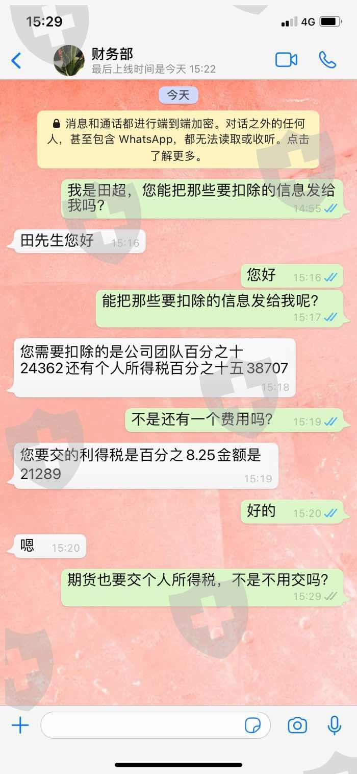 刚入金的时候说的好好的,到出金的时候就要交这样的钱,那样的钱,我入金8万人民币,现在出金要我交2万多的利得税,说才可以出金,我跟他说不可以在赢利得里面扣掉吗?他说不行,那有这样的道理呢?远离这个女人,骗子。