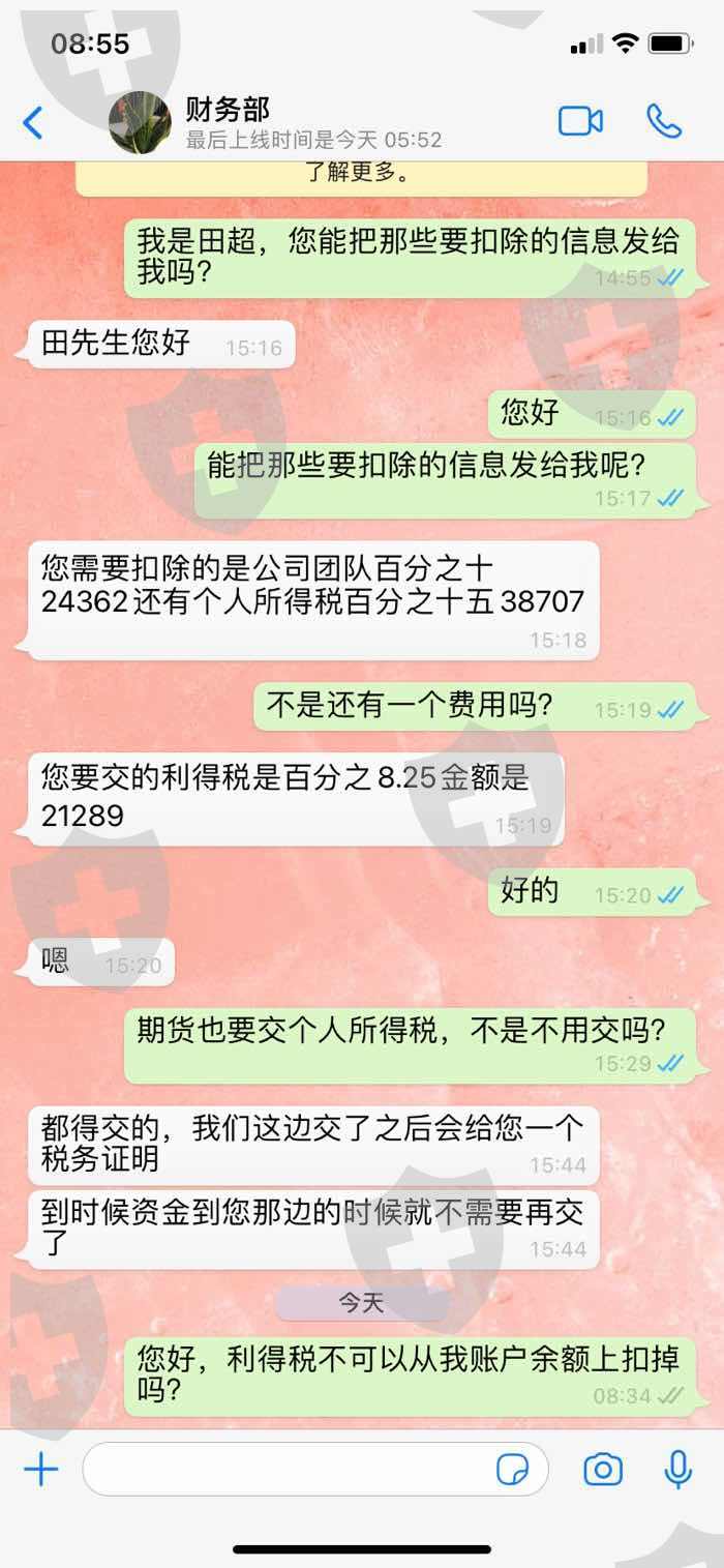 我从5月28号开始入金进去,到7月份,才两个月的时间,入金1万欧元,两个月盈利了很多,后来我就出金,出金要交3种手续费,我也是认了,可是不能从里面的资金扣,要交钱进去才可以出金,这是什么道理嘛!难道就没有人管管吗?