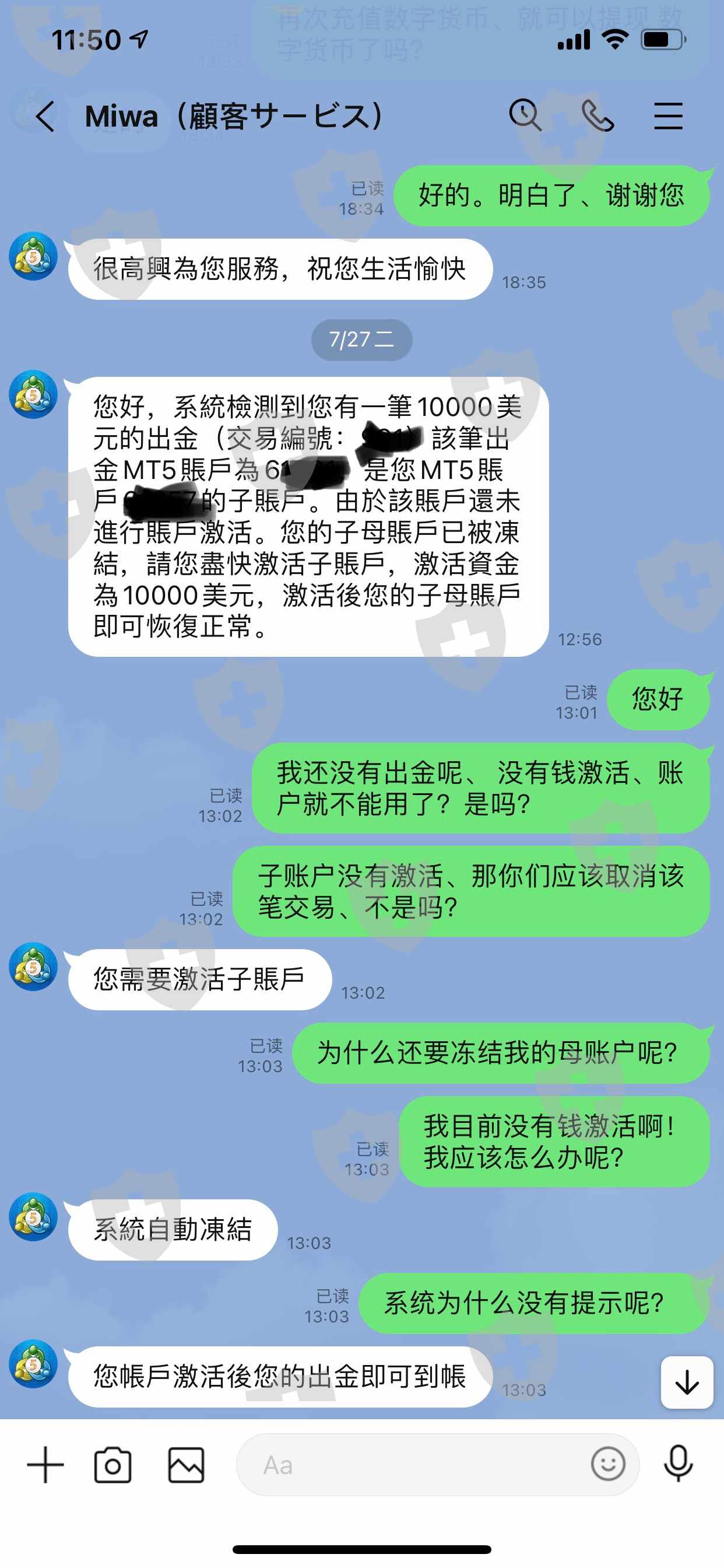 无法出金、不管怎么说都没用、就要10000美元的激活账户的费用!而且每天还有1%的滞纳金!日本国内没有办事处、没有联系电话。我的账户被冻结、不能交易、不能出金!