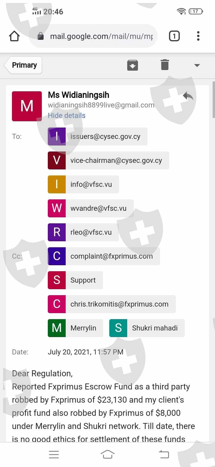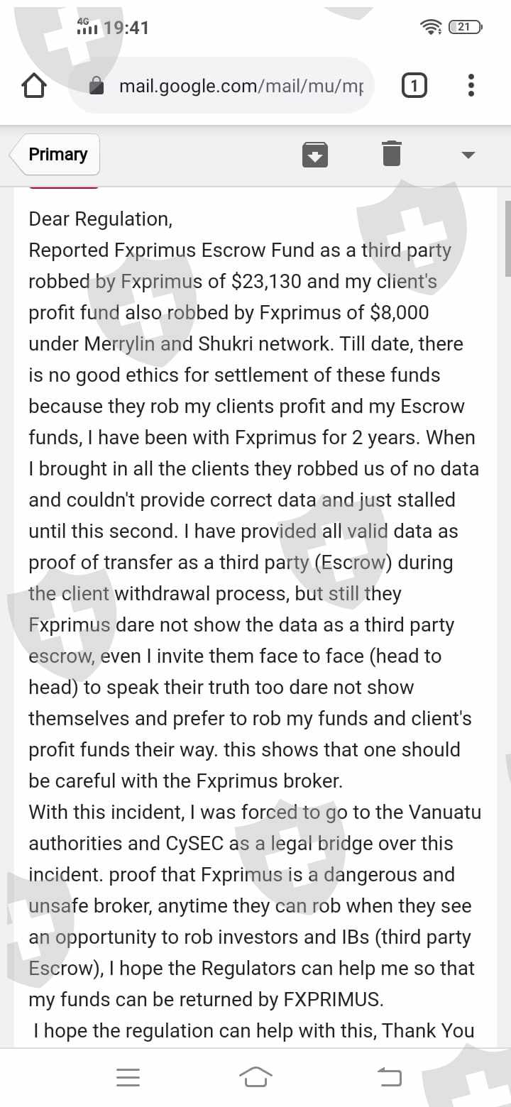 Reporting FXPRIMUS to the Vanuatu Regulatory Authorities, hoping that the broker will be sanctioned for their actions and removed from Vanuatu's regulations for the actions taken by the Fxprimus broker. will immediately follow up with the Cysec regulations soon. FXPRIMUS CHEAT ESCROW MONEY FROM MY WIFE and client Money.#Scam Broker#FXPRIMUS broker Cheater#FXPRIMUS.