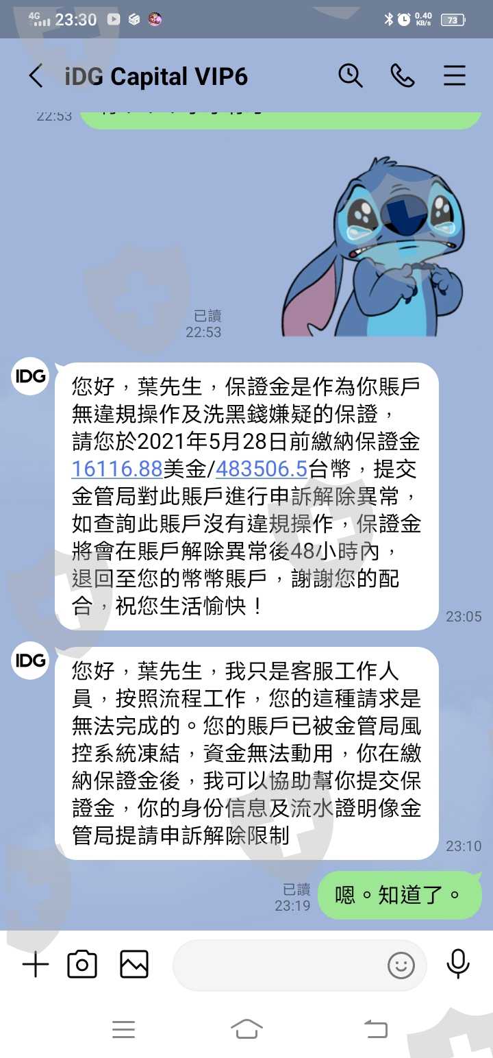 佯稱投資數字貨幣,最後藉口洗黑錢致無法出金,本人已報案,慘痛經驗。