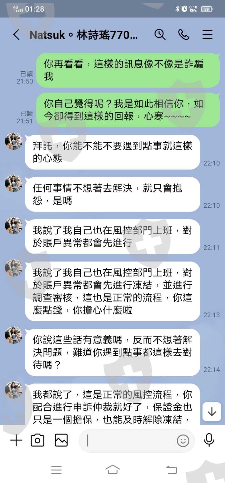 透過女人,假藉台北富邦銀的風管主管,投資數字貨幣,並以單畫面滾動式誘騙獲利,鼓勵投入金額。待獲利要取金時,卻說涉及洗黑錢,帳戶要開必需保證金證明。然~待我報案後,咱管區員警查詢下,嚇然發現已有通報詐騙案,戶頭鎖定中。故給不知情的民眾告知,切勿被騙。