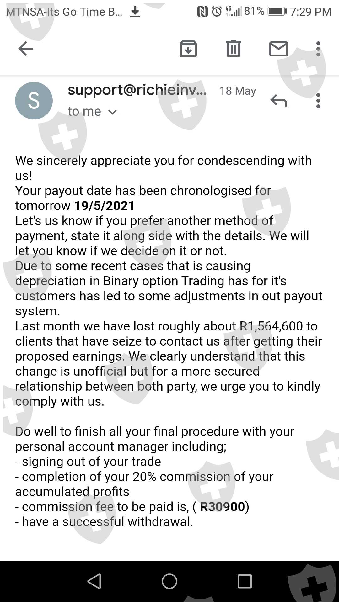 The guy called Markus Frank please be careful people,they wanted me to pay more money to withdraw my profit,he decided to offer me a job,to do fake video's that's says the company is legit and I must also called his name and surname on video then I will get my money, please help,other company called Riechinvestment i want my money 6000 they wanted me to pay 30900, please I need help
