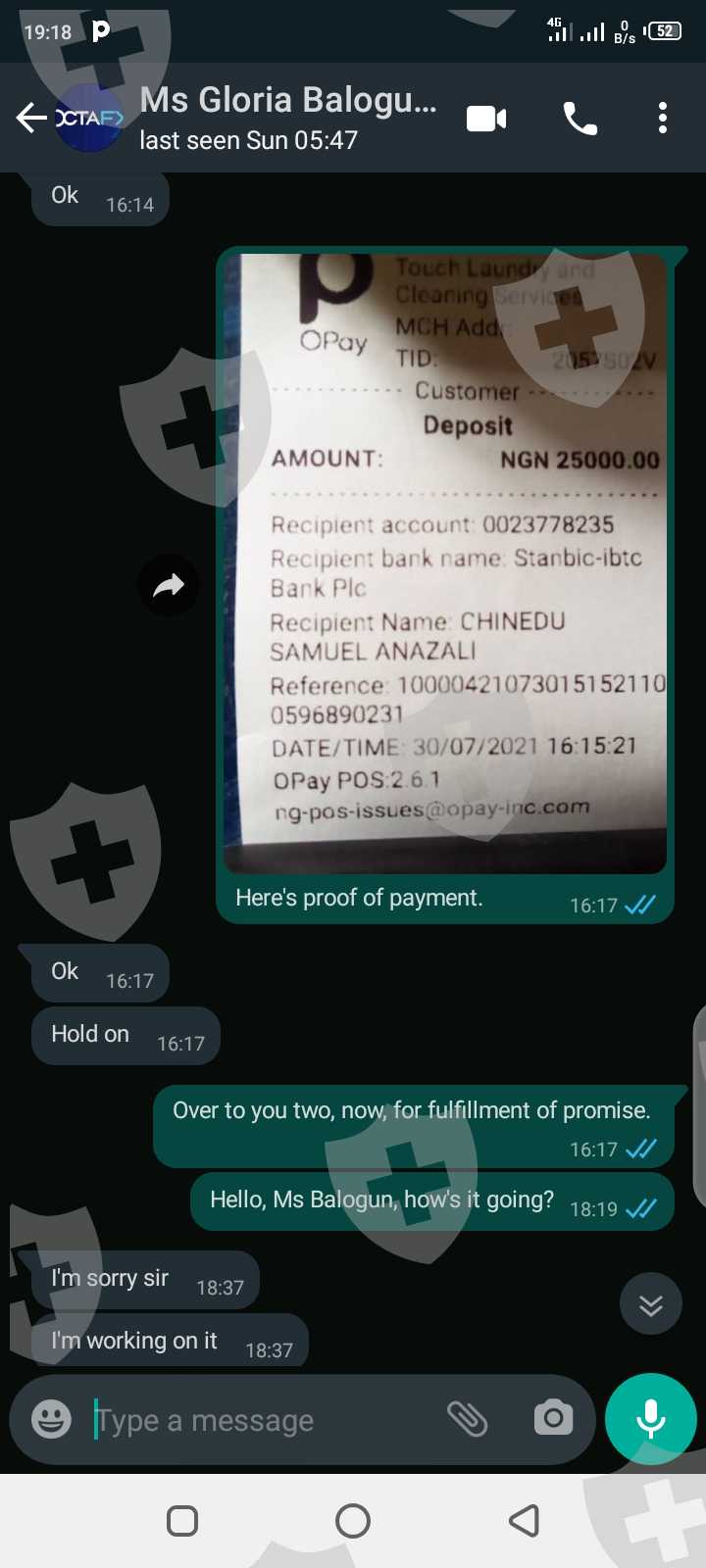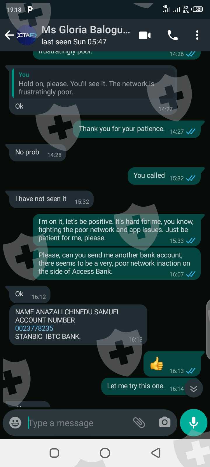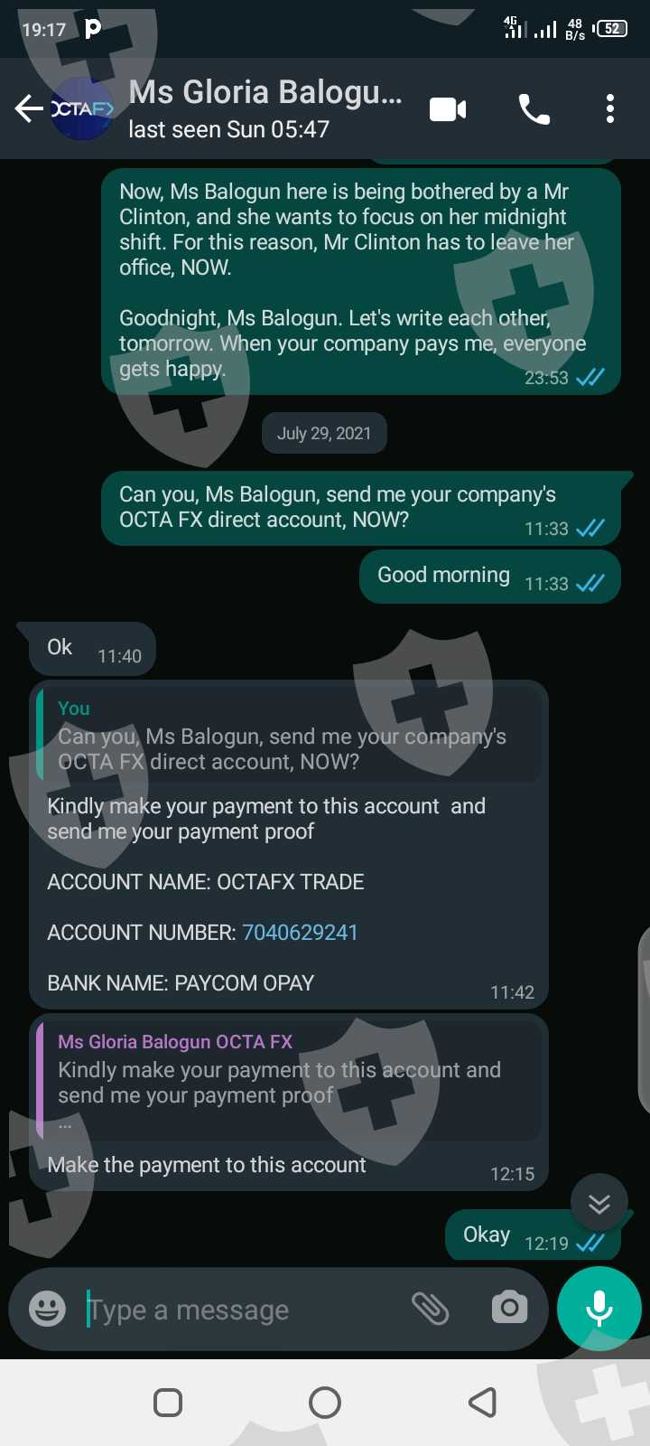 I'm Clinton Scott Prince from Rivers State of Nigeria. I've been scammed by so-called agents of OCTA FX; a lady by the name of Gloria Balogun, who posted the Facebook advert and her colleague, Mr Emmanuel Joseph Olatunji with WhatsApp