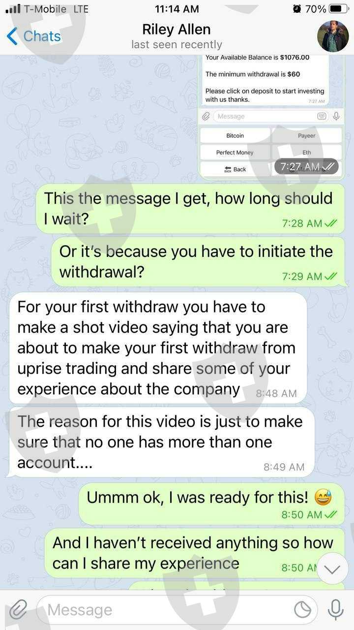 The testimonials are fake as the Group admin requests to do it for withdrawal.