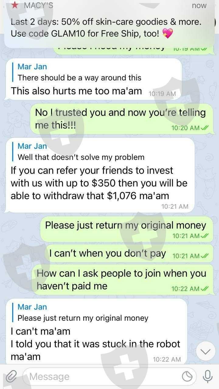 This group is a Fraud Investment Group . The Bot Is Fake ! They will Never Send an Withdrawal .
